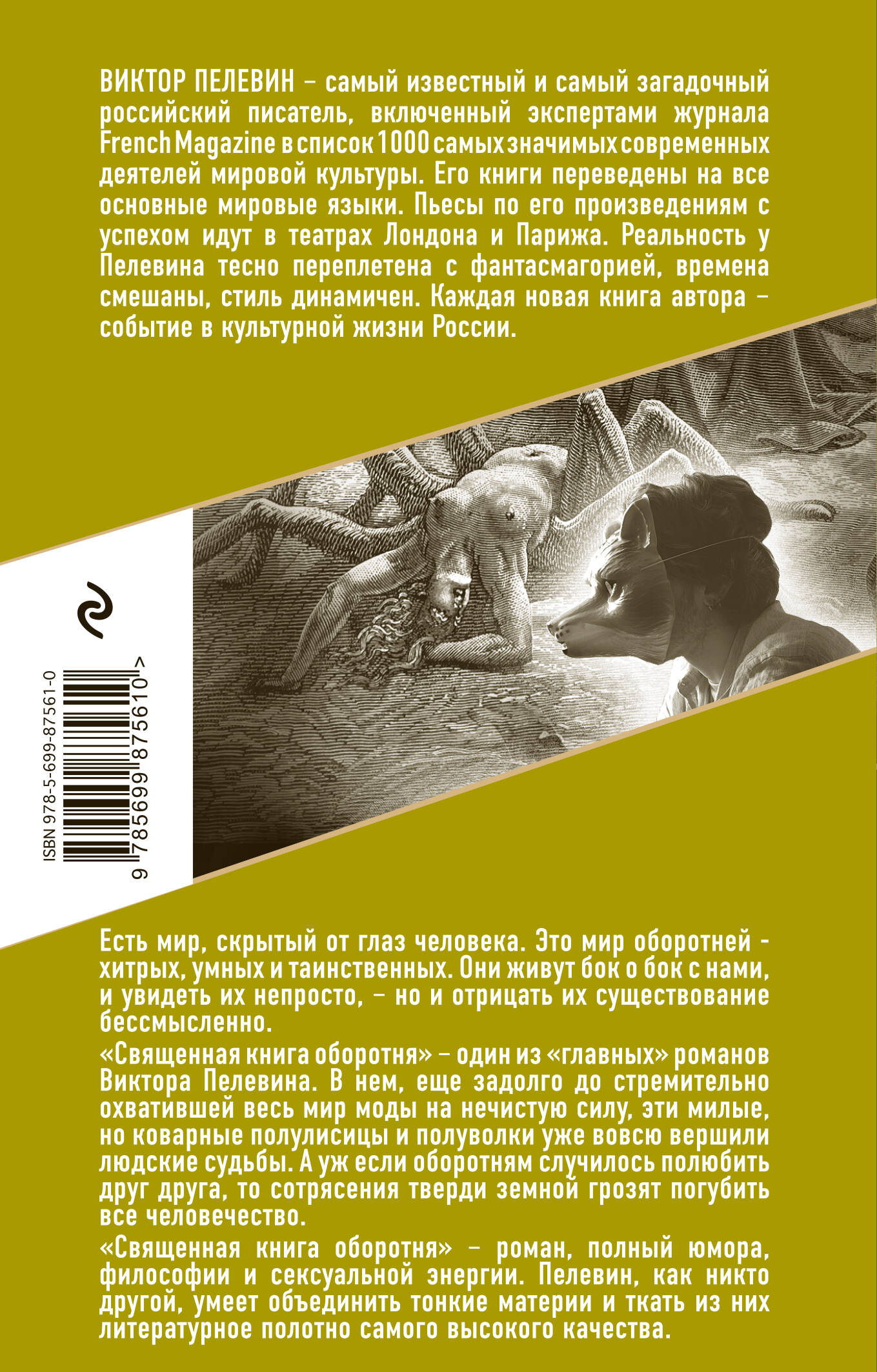 Пелевин стал знаковым писателем девяностых, и сегодня, когда девяностые вспоминаются особенно остро, книги Пелевина обретают новую актуальность. «Священная книга оборотня» - история о женщине, которая умела оборачиваться лисой. Но это лишь начало сюжета, который затронет и бизнес, и политику, и полицию;)| Издательство | ООО "Издательство "Эксмо" |