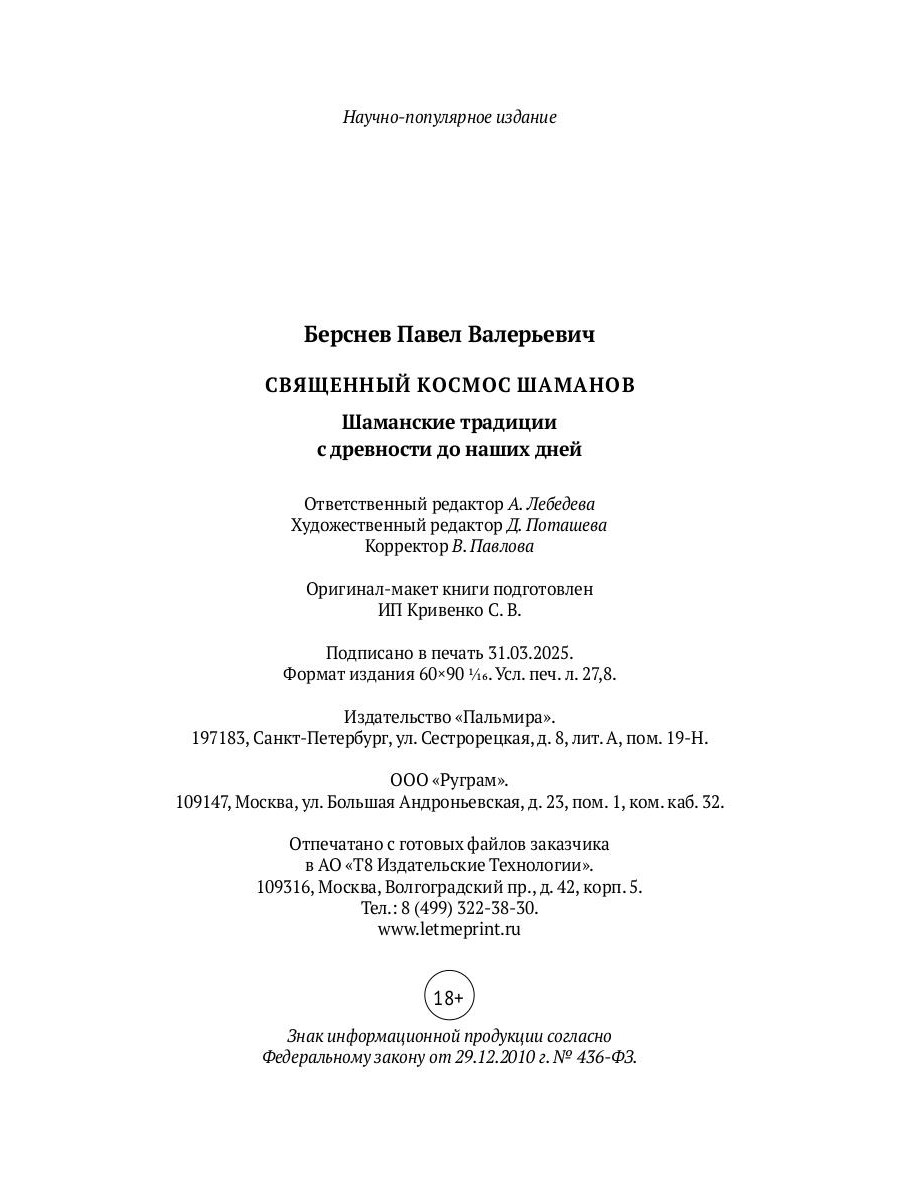 Аннотация: Священный космос шаманов: Шаманские традиции с древности до наших дней. 6-е изд., испр