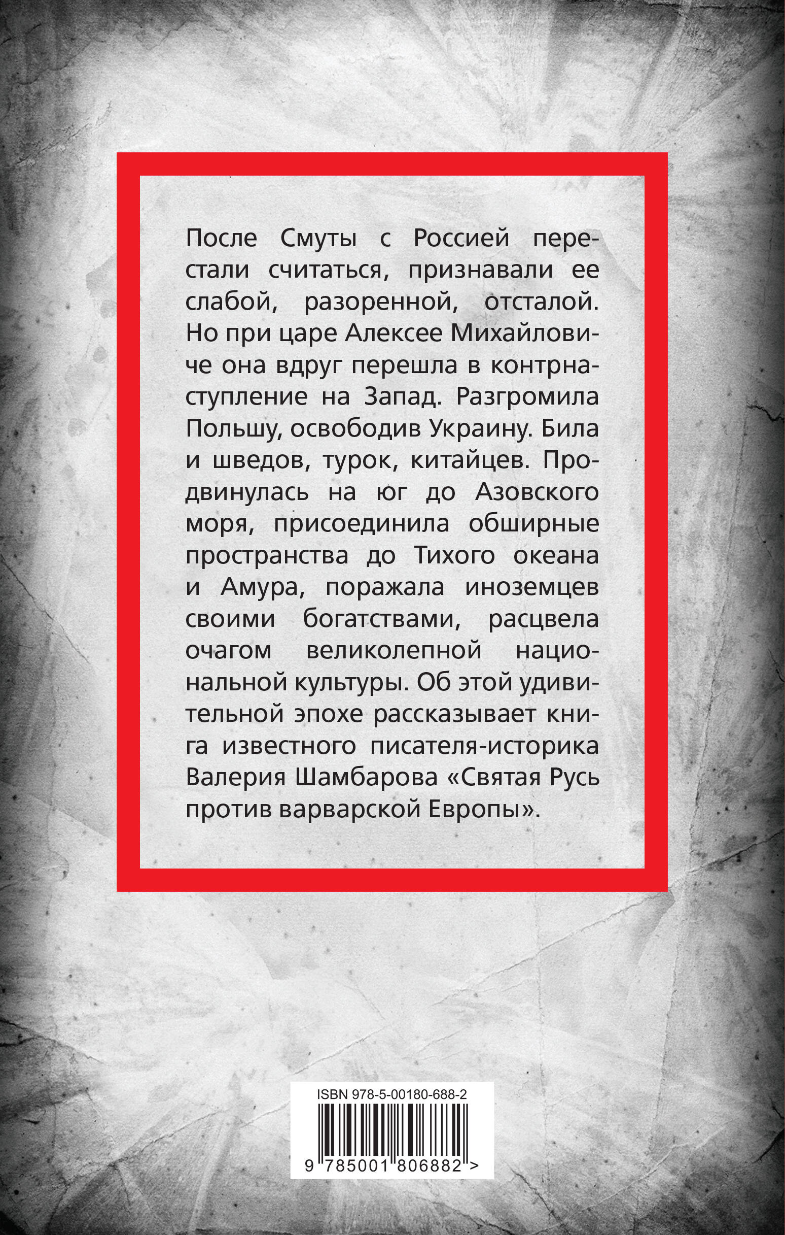 После Смуты с Россией перестали считаться, признавали ее слабой, разоренной, отсталой. Но при царе Алексее Михайловиче она вдруг перешла в контрнаступление на запад. Разгромила Польшу, освободив Украину. Била и шведов, турок, китайцев. Продвинулась на юг до Азовского моря, присоединила обширные пространства до Тихого океана и Амура, поражала иноземцев своими богатствами, расцвела очагом великолепной национальной культуры. Об этой удивительной эпохе рассказывает книга известного писателя-историка Валерия Шамбарова «Святая Русь против варварской Европы».
