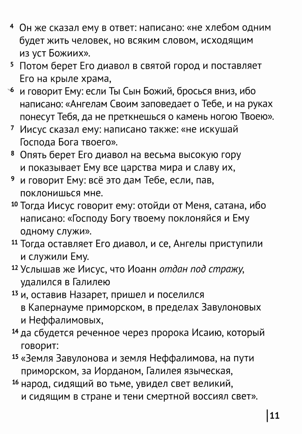 Текст Евангелий от Матфея, Марка, Луки, Иоанна в данном издании приводится по Синодальному переводу Библии.| Издательство | Источник жизни |
