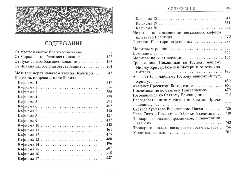 В книгу "Святое Евангелие. Псалтырь. Молитвослов" содержит Святое Евангелие: святое благовествование от Матфея, от Марка, от Луки, от Иоанна; Псалтирь: молитвы перед началом чтения Псалтири, Псалтирь пророка и царя Давида, Молитвы по прочтении несколькимх кафисм или всей Псалтири; Молитвы: утренние молитвы, молитвы на сон грядущим, каноны, акафисты, благодарсвенные молитвы по Святым Причащениям, молитвы разные.| Издательство | Изд. Московской Патриархии |
