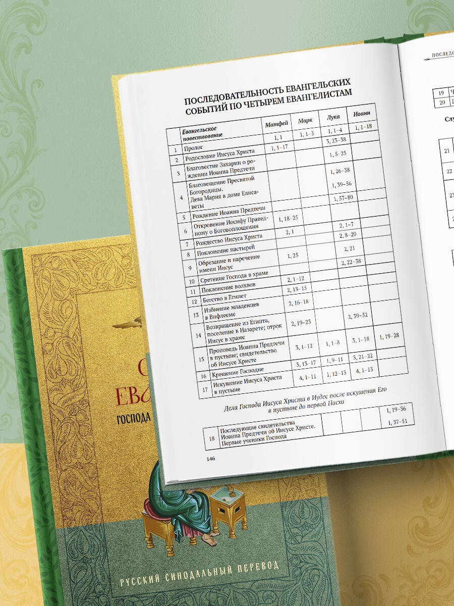 Книга «Святое Евангелие. Русский синодальный перевод» содержит текст Четвероевангелия на русском языке с добавлением справочных материалов: указатель Евангельских и Апостольских чтений церковных, последовательность Евангельских событий по четырем евангелистам, последовательность событий по книге Деяний святых Апостолов, денежные единицы в Новом Завете, карты Палестины и Иерусалима времен Христа. Благодаря обширной дополнительной информации и удобному формату издания данная книга станет комфортным стартом как для начинающих изучать христианство, так и для тех, кто ценит сочетание христианской традиции с современным дизайном.| Издательство | ООО "Издательство "Эксмо" |