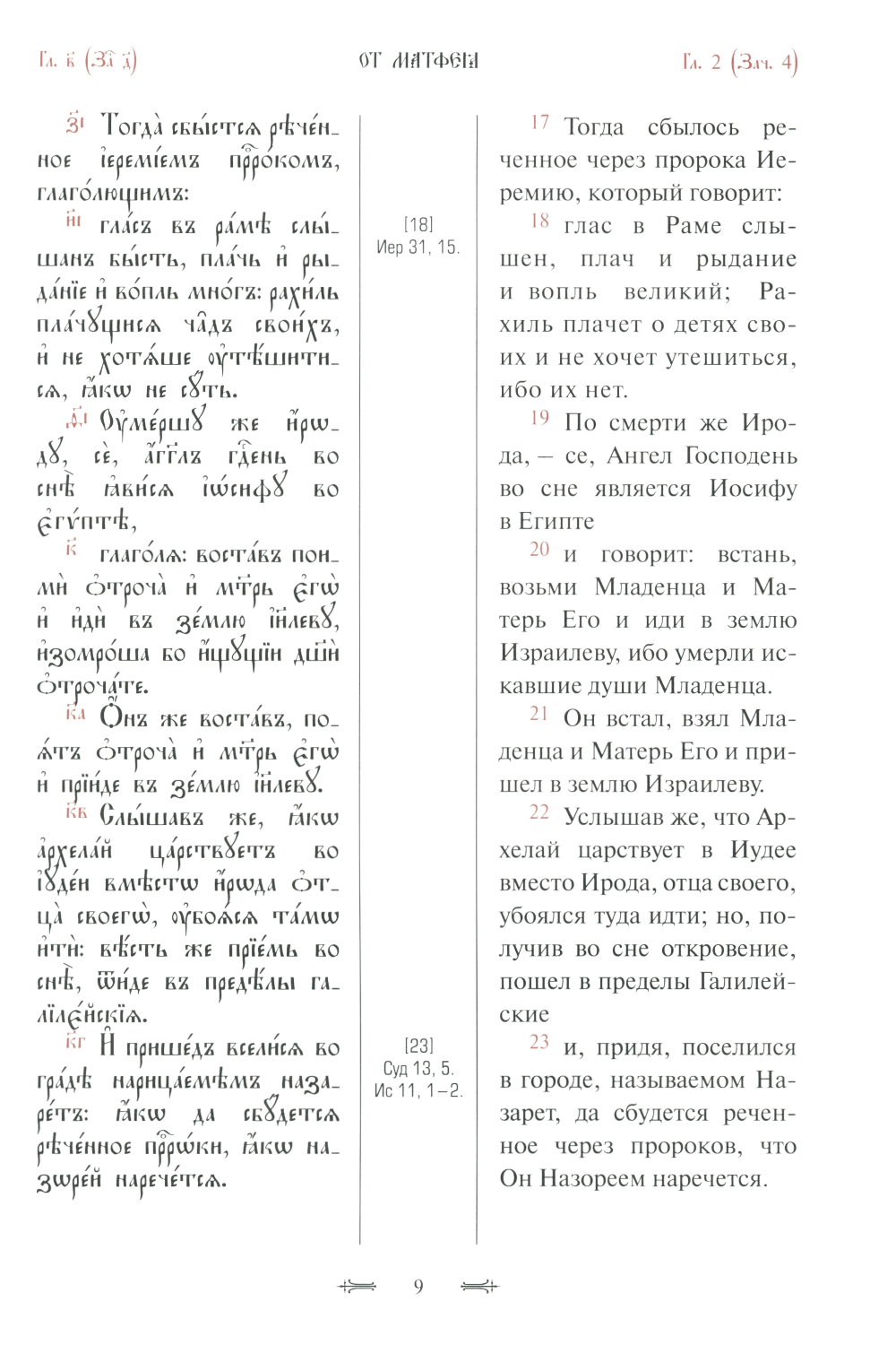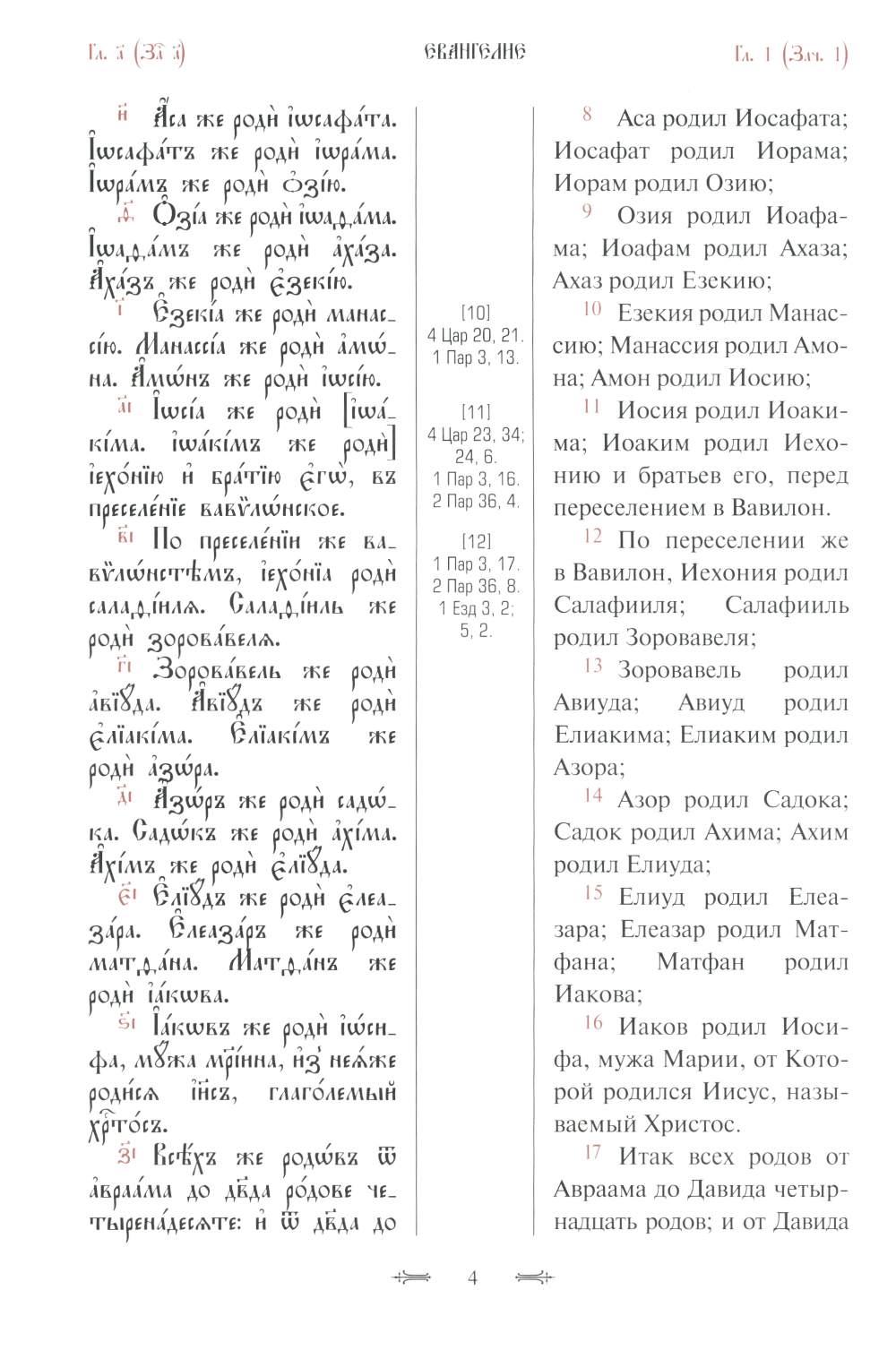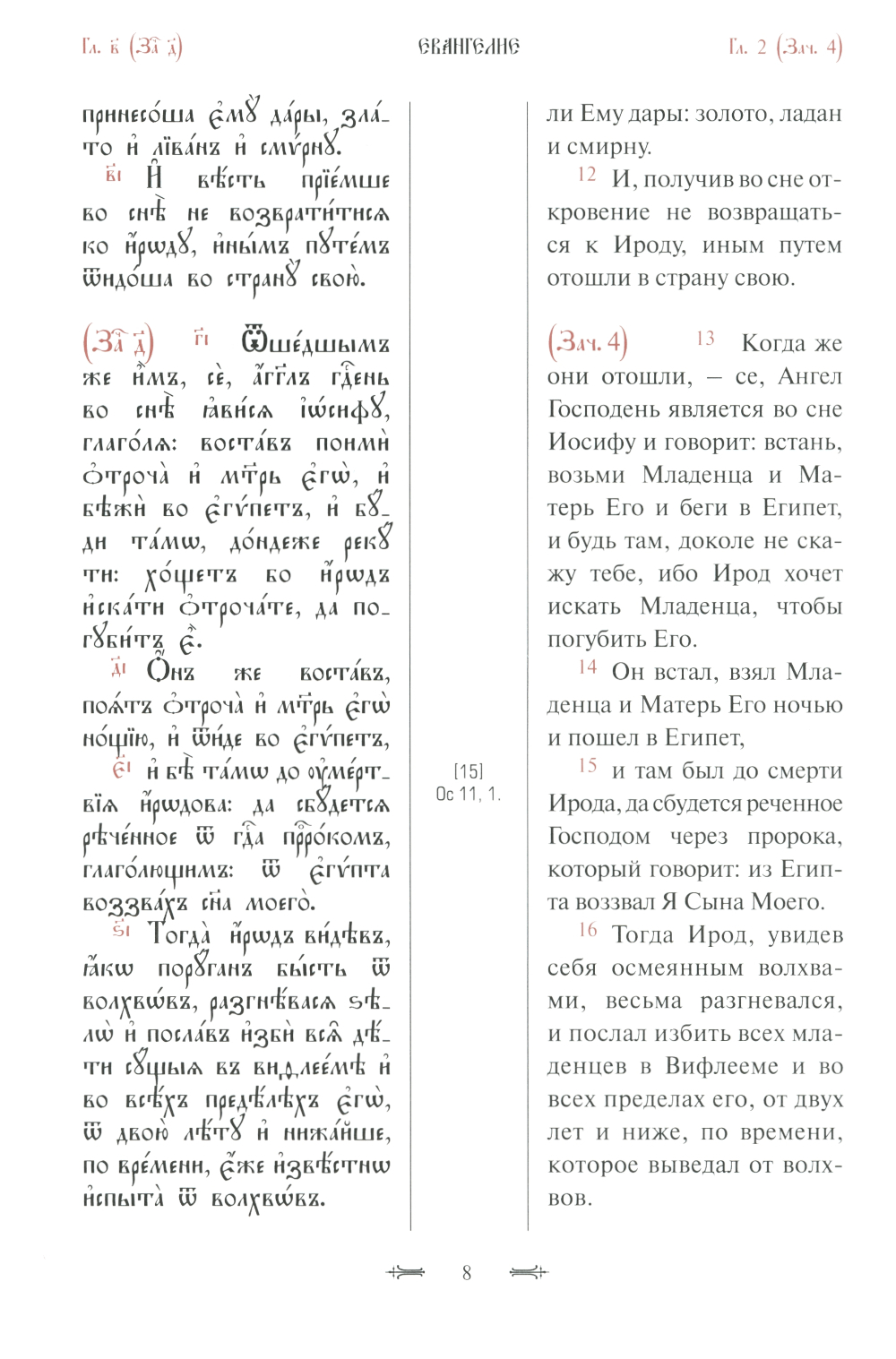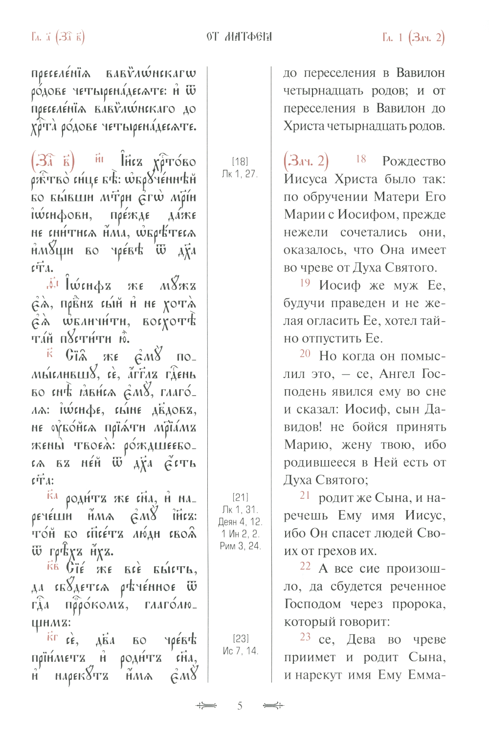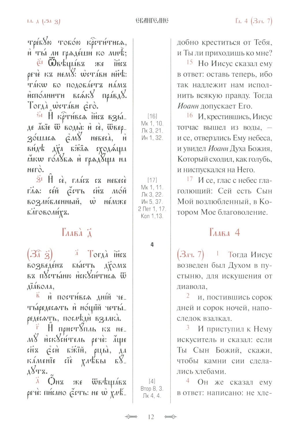 Святое Евангелие на церковнославянском языке сопровождается параллельным русским синодальным переводом. Это дает возможность глубже понять смысл Писания и облегчает восприятие церковнославянского текста. Сопровождение текста параллельными местами и удобный для чтения шрифт облегчат изучение Святого Писания, а благородное оформление и качественная печать позволяют изданию занять достойное место в любой библиотеке.| Издательство | Лепта Книга |