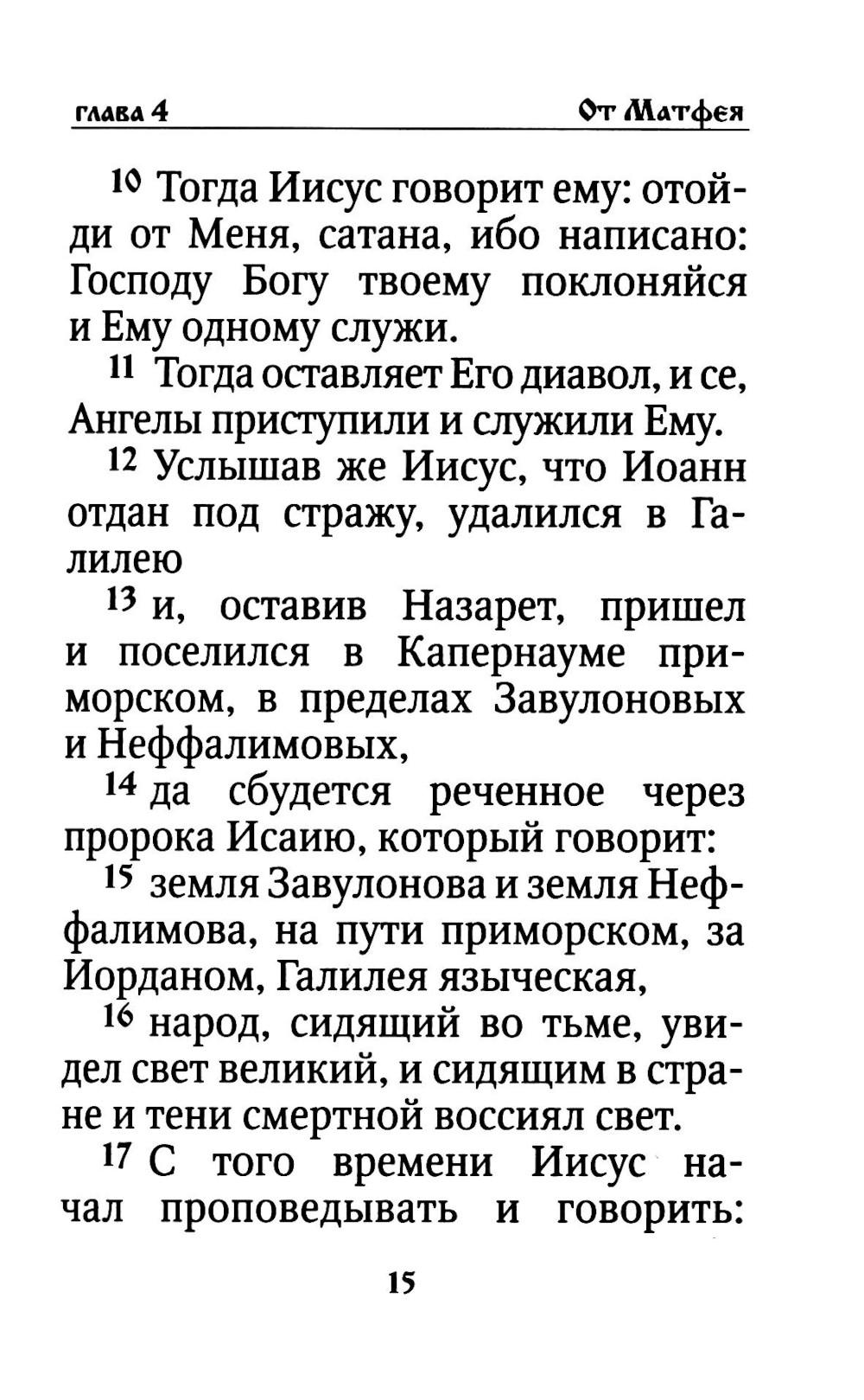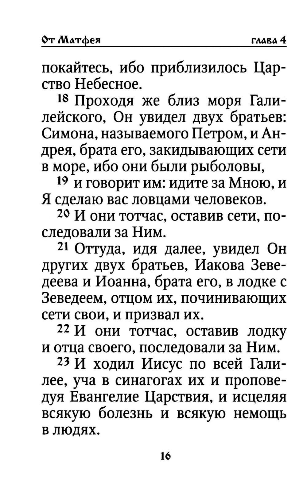 Божие откровение людям принес воплотившийся на земле Сын Божий, Господь наш Иисус Христос. Именно это откровение и содержится в Евангелии - Благой вести о приходе в мир Спасителя, Его земной жизни, Крестной смерти, Воскресении из мертвых и Вознесении на небо, о Его Божественном учении и чудесах. Святое Евангелие - поистине главная книга человечества, в которой заключены Божественные истины, ведущие нас ко спасению. В настоящем издании текст Четвероевангелия приводится на русском языке в Синодальном переводе и набран крупным шрифтом, удобным для восприятия даже людям со слабым зрением.| Издательство | Познание |