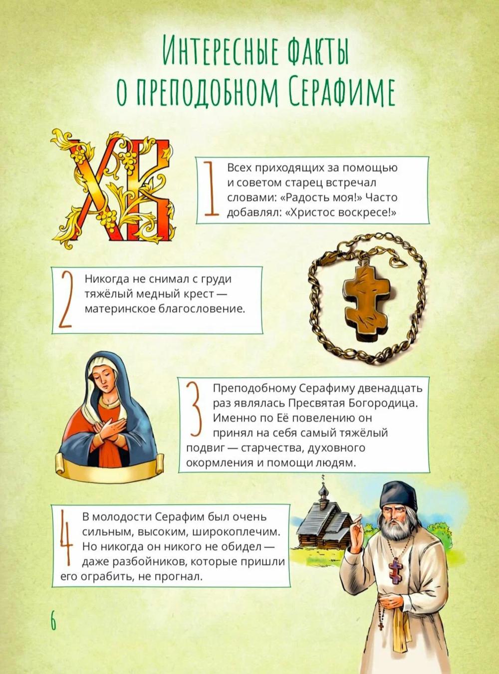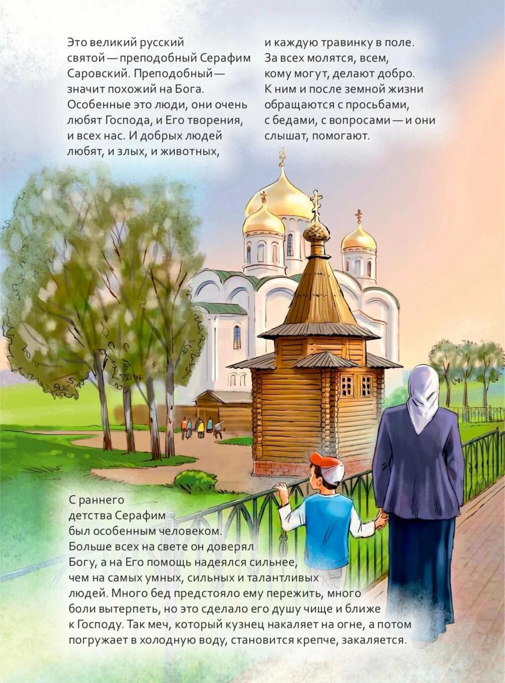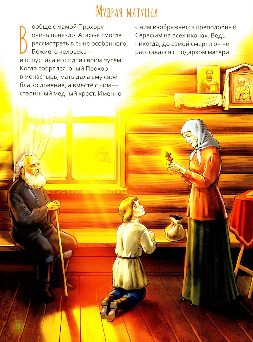 На страницах этой книги ребята познакомятся с жизнью и подвигами Серафима Саровского - одного из самых известный русских святых. Как дуновение свежего и здорового духовного воздуха он пробуждал своих современников от греховного сна. Простой смиренный монах, батюшка Серафим удивлял подвигами, о которых люди того времени читали только в житиях древних подвижников. Чего только стоило приветствие старца - «Христос воскресе, радость моя!», - которое звучало из его уст всегда, а не только в пасхальные дни. Эти слова святого помогали всем, кто приходил к нему за советом, прикоснуться к радости торжества Жизни над смертью. В батюшке Серафиме современники видели человека глубокой и предельно живой веры, который находил нужные слова для утешения и вразумления. Книга расскажет о детстве преподобного Серафима, его пути к Богу, о том, как он помогал людям, исцеляя души и сердца. Житие святого Серафима - не простая биография, а сокровищница уроков любви, милосердия и смирения.| Издательство | Вольный Странник |