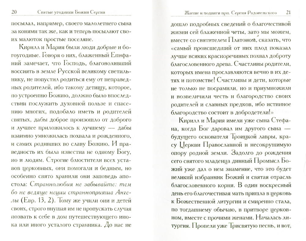 Имя Сергей - латинского происхождения. В переводе оно означает «досточтимый». «Есть имена, которые носили исторические люди, жившие в известное время, делавшие исторически известное жизненное дело, но имена, которые уже выступили из границ времени. Такие люди становятся для грядущих поколений вечными их спутниками, и целые века благоговейно твердят их дорогие имена не столько для того, чтобы не забыть правила, ими завещанного». - Это слова историка В.О. Ключевского из книги о Сергии Радонежском. Но можно отнести эти слова и к другим историческим личностям, ставших нашими путеводителями. Мы должны благоговейно чтить их память. В нашей книге приводятся жития святых с именем Сергий, а также церковные предания о них. Жизнеописания досточтимых святых помогут современному человеку лучше понять подлинную жизнь Церкви.| Издательство | Сибирская Благозвонница |