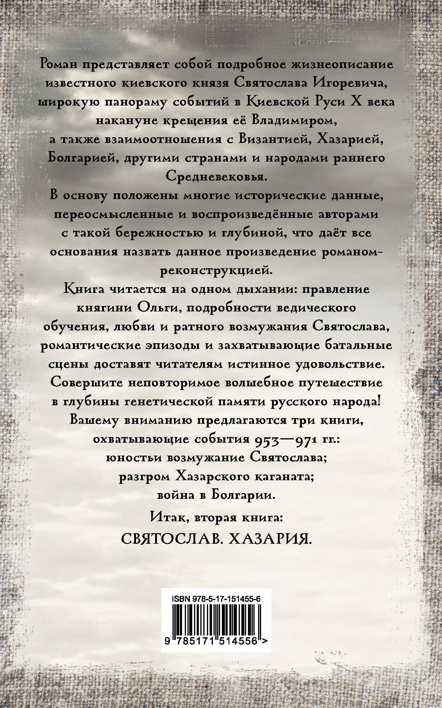 Валентин и Юлия Гнатюк, авторы ряда книг на древнеславянскую тематику, среди которых замечательная трилогия о его внуке князе Святославе Хоробром. Увлекательная правдивая история о князе Cвятославе читается на одном дыхании. В основу положены многие исторические данные, переосмысленные и воспроизведённые авторами с такой бережностью и глубиной, что даёт все основания назвать данное произведение романом-реконструкцией.Факты, описанные в книге, в школьной программе не упоминаются. Интересна для углубленного понимания истории славян. - Уникальные исторические факты про правление Святослава. - Факты, описанные в книге, в школьной программе не упоминаются. - Интересна для углубленного понимания истории славян. Роман "Святослав. Хазария" представляет собой подробное жизнеописание известного киевского князя Святослава Игоревича, широкую панораму событий в Киевской Руси X века накануне крещения её Владимиром, а также взаимоотношения с Византией, Хазарией, Болгарией, другими странами и народами раннего Cредневековья. В основу положены многие исторические данные, переосмысленные и воспроизведенные авторами с такой бережностью и глубиной, что дает все основания назвать данное произведение романом-реконструкцией. Книга читается на одном дыхании: правление княгини Ольги, подробности ведического обучения, любви и ратного возмужания Святослава, романтические эпизоды и захватывающие батальные сцены доставят читателям истинное удовольствие. Совершите неповторимое волшебное путешествие в глубины генетической памяти русского народа! Вашему вниманию предлагается три книги, охватывающие события 953-971 гг.: юность и возмужание Святослава; разгром Хазарского каганата; война в Болгарии. Итак, вторая книга: СВЯТОСЛАВ. ХАЗАРИЯ. Для тех, кто любит историю и эту эпоху. У книги "Святослав. Хазария" очень удобный компактный формат с мягким переплетом. Удобно читать и брать с собой из-за ее легкости.| Издательство | АСТ |