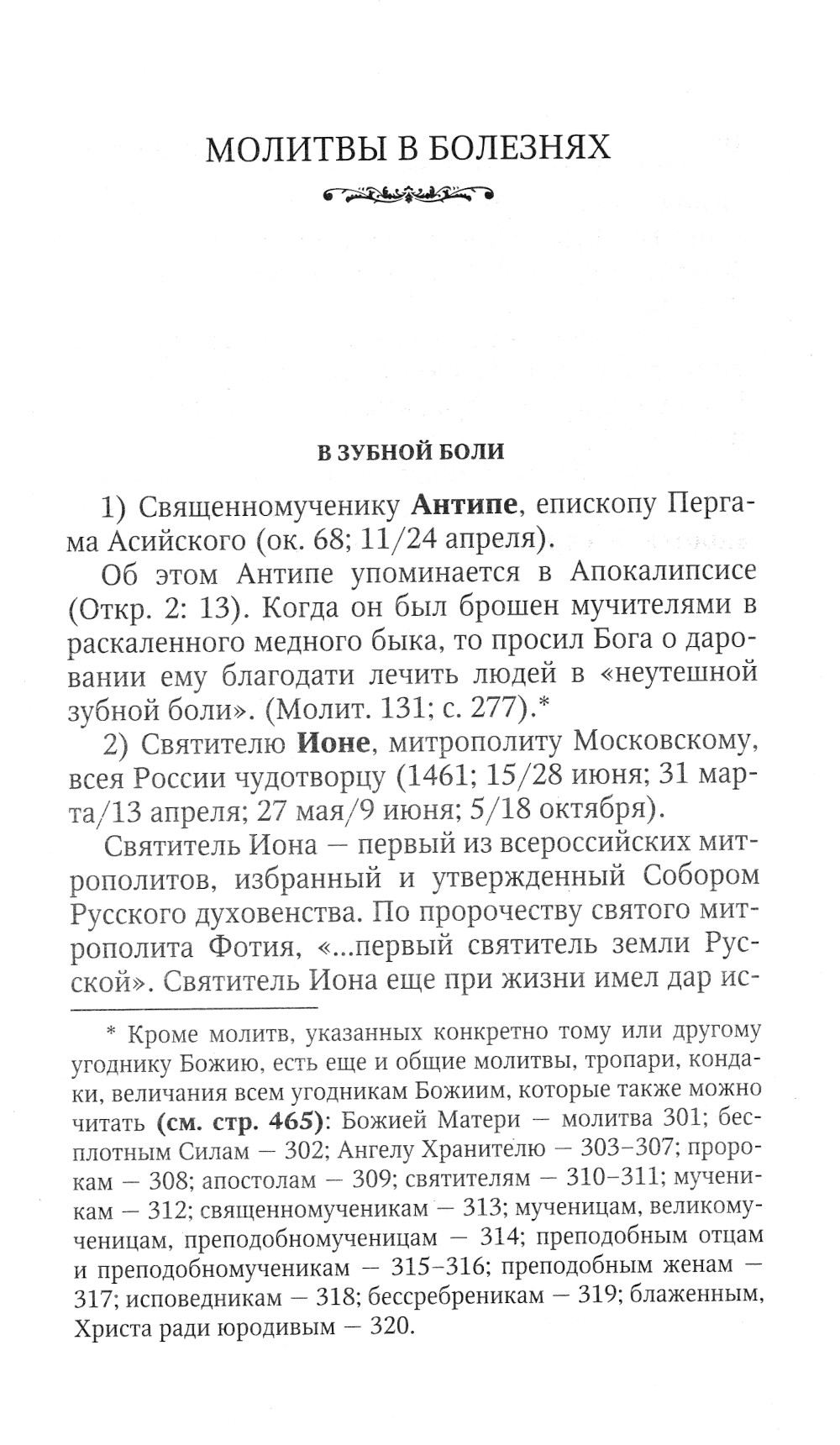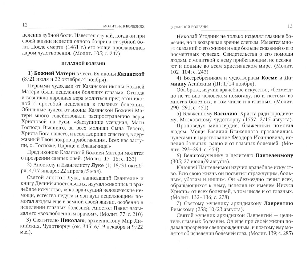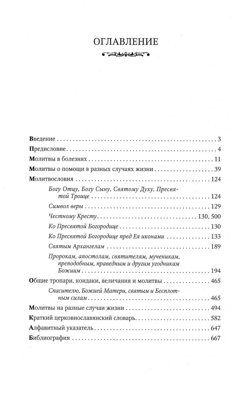 В книге указано, какому святому в каких случаях молиться для избавления от бед, скорби, напастей, от разных заболеваний и от наветов вражиих. Указаны даты: год кончины и обретения мощей святого и дата, когда Православная христианская Церковь отмечает день памяти этого святого. Во второй части книги собраны молитвы ко Господу нашему Иисусу Христу, Божией Матери, архангелам, ангелам, пророкам, апостолам, святителям, мученикам, преподобным, бессребреникам и другим святым угодникам Божиим, ходатаев за нас пред Богом, общие тропари, кондаки, величания, молитвы в честь икон Божией Матери и угодников Божиих, молитвы на разные случаи жизни, краткий церковнославянский словарь и алфавитный указатель икон Божией Матери и святых угодников Божиих, ходатаев наших пред Господом. В книгу вошли молитвы только из одобренных Священным Синодом, Духовной Цензурой и дозволенных к печати Духовно-Цензурным Комитетом акафистов, миней, молитвословов, издававшихся в основном в XIX столетии.| Издательство | Терирем |