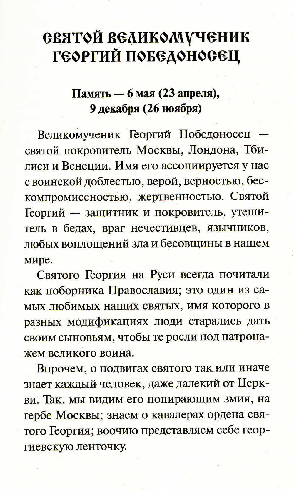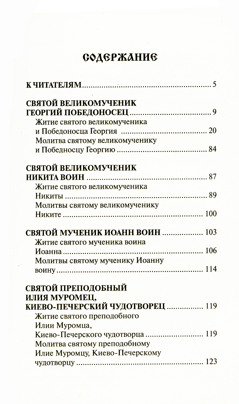 В книге рассказывается о православных святых воинах, память которых мы чтим, об их воинском и христианском подвиге, о жизни во Христе. В книге жития, случаи помощи по молитвам, молитвы: святому великомученику и Победоносцу Герогию, святому великомученику Никите воину, святому мученику Иоанну воину, святому преподобному Илие Муромцу, Киево-Печерскому чудотворцу, святому благоверному великому князю и воину Александру Невскому, святому благоверному князю Даниилу Московскому, святому воину Феодору Ушакову.| Издательство | Омега-Л |