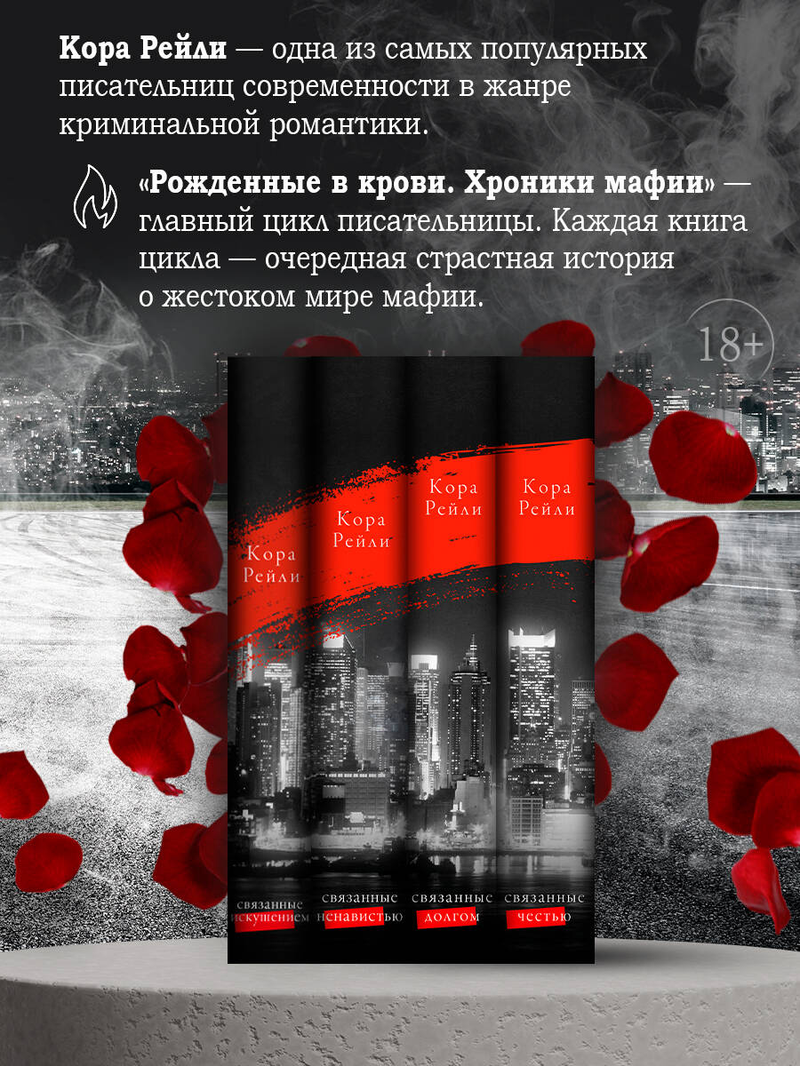 Кора Рейли - одна из самых популярных писательниц современности, работающих в жанре любовного романа. Каждая её книга расходится десятками тысяч экземпляров, а хэштеги #корарайли и #хроникимафии набирают сотни миллионов просмотров в TikTok. «Рожденные в крови. Хроники мафии» - главный цикл писательницы. Каждая книга цикла - очередная страстная история о жестоком мире мафии, причем герои предыдущих романов обязательно мелькают в повествовании на заднем фоне. «Связанные искушением» - четвертая книга цикла.| Издательство | Издательство "АСТ" |