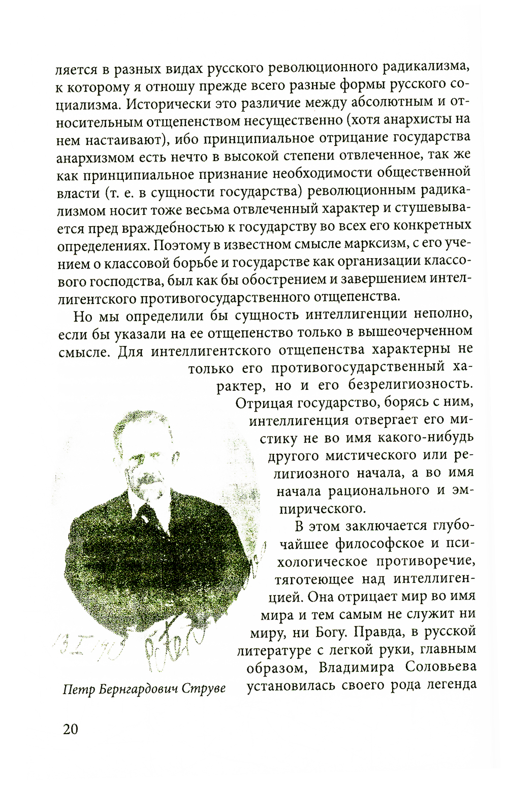 Интеллигенция в России никогда не рассматривалась просто как некий социальный слой или группа людей, объединенных определенным родом занятий (умственным трудом), невозможно к ней было применить и принятое на Западе обозначение «интеллектуалы». Достаточно быстро, еще в первой трети XIX века одним из основных (если не самым основным) признаком русского интеллигента стало ярко выраженное социальное мессианство. Всякий русский интеллигент непременно был озабочен судьбами Отечества, мнил себя носителем общественной совести, активно сопереживал «униженным и оскорбленным» и непременно находился в оппозиции к государству. Без этого называться интеллигентом было немыслимо. На фоне катастрофических событий рубежа веков возникали обоснованные сомнения и вопросы о сути и роли русской интеллигенции, претендовавшей на роль общественной совести, нравственного камертона и лидеров общественного развития. Сегодня эти споры и статьи наших мыслителей о русской интеллигенции актуальны, как никогда. И сколь же злободневно звучат тезисы, написанные более ста лет назад.