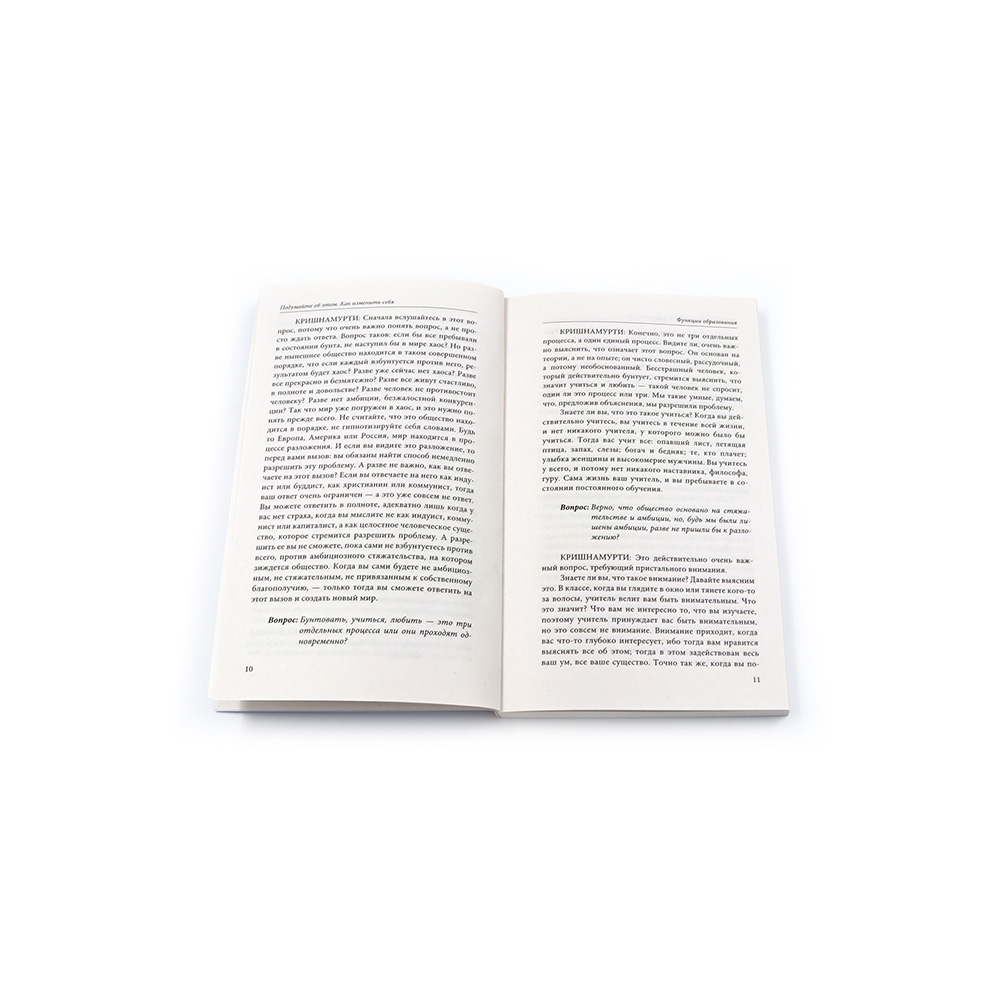 Комплект содержит книги. «Свобода от известного» Свобода является одной из высших человеческих ценностей. Но знаем ли мы, что это такое? С самого первого дня жизни человек начинает испытывать зависимость - от авторитетов, стереотипов, традиций - зависимость, которая распространяется на все общество и регламентирует характер его дальнейшего развития. Как избавиться от нее? Как перестать мыслить фрагментарно, очистить своё сознание и выйти на принципиально новый уровень духовного развития? Ответы на эти и другие вопросы вы найдете в книге-хрестоматии Джидду Кришнамурти «Свобода от известного». Данный текст, который был составлен биографом и романистом Мэри Лютьенс и получил одобрение самого философа, является компиляцией его бесед и лекций и станет незаменимым помощником для тех, кто ищет свой путь духовного освобождения. «Подумай об этом» Индийский философ Джидду Кришнамурти известен своими беседами на философские и духовные темы. Он провел свою жизнь в путешествиях по миру, выступал в качестве оратора перед большими группами заинтересованных людей. Философ верил в необходимость революции сознания каждого человека, при этом замечал, что внешние факторы, такие как общество, религия, не смогут послужить причиной изменений. В книге «Подумайте об этом. Как изменить себя» вынайдете рассуждения на такие темы как: образование, свобода, любовь, полнота жизни и другие. Многие из вопросов, которые задаются Кришнамурти, не утратили своей актуальности и до сих пор являются предметами споров.| Издательство | Амрита-Русь |