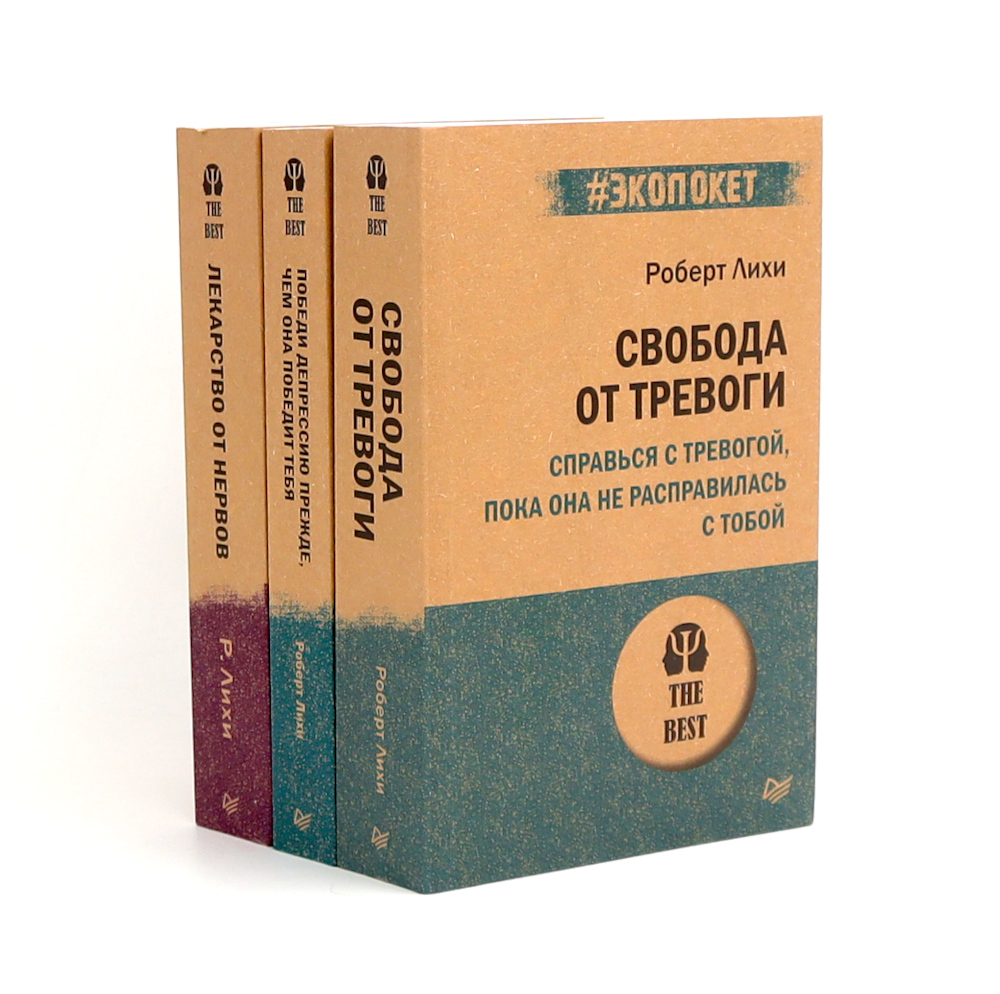 Комплект содержит книги. «Свобода от тревоги» Перед любым ответственным событием вы трясетесь от ужаса? Не можете уверенно разговаривать с начальником? Боитесь, что с вашими детьми случится что-то плохое? Из этой книги вы узнаете, как обмануть свой страх и научиться справляться со стрессом. Здесь вы найдете простое пошаговое руководство, чтобы преодолеть любые виды беспокойства. Теперь вы навсегда избавитесь от тревоги и начнете жить полной жизнью. «Победи депрессию прежде, чем она победит тебя» В мире более 350 миллионов человек страдают депрессией. Это число неуклонно растет, и, к сожалению, треть людей, которые чувствуют невыносимую боль, безнадежность и напряжение депрессии, никогда не обращаются за лечением. Роберт Лихи, психотерапевт с мировым именем, рассказывает о причинах, симптомах и методах лечения депрессии. Реальные истории пациентов в сочетании с простыми пошаговыми инструкциями помогут вам разобраться со своей депрессией и навсегда расстаться с ней. Вы выясните, как победить чувство усталости, одиночества и безнадежности. Разработаете план развития уверенности в себе. В книге собраны самые мощные инструменты, которые помогут вам победить депрессию и снова почувствовать себя хорошо. «Лекарство от нервов» Волнение захлестывает вас в самые неподходящие моменты? Беспокойство становится вашей второй натурой? Вы много раз перепроверяете себя и все равно не можете успокоиться? На протяжении более двадцати пяти лет доктор Роберт Л. Лихи успешно помог тысячам людей победить волнение и беспокойство. Эта книга, известная во всем мире, содержит программу, включающую практические, простые в использовании советы и методы. Вы научитесь спокойно и уверенно решать как общие жизненные вопросы, так и конкретные задачи, связанные с отношениями, здоровьем, деньгами, работой и необходимостью самоутверждения в мире. Хватит тревожиться, начинайте жить!| Издательство | Питер |
