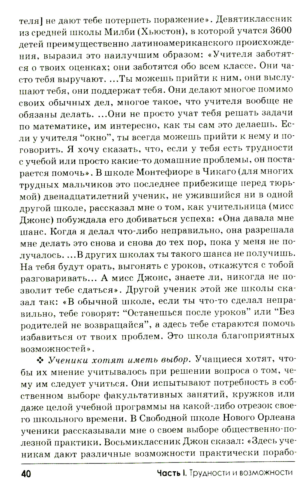 Последняя книга классика психологии XX века Карла Роджерса, написанная в соавторстве с Джеромом Фрейбергом, посвящена новой идеологии и политике образования, основанной на гуманистическом человекоцентрированном психологическом подходе Роджерса. В книге представлен большой фактический материал, демонстрирующий реальные преимущества человекоцентрированного обучения и воспитания на различных ступенях современной системы образования. Книга содержит сведения о конкретных путях и средствах перестройки личности учителя и его взаимоотношений с учащимися, а также общетеоретические главы, посвященные таким центральным аспектам психологической теории Роджерса, как свобода, ценности и полноценно функционирующий человек. Психологам, педагогам, родителям.| Издательство | Смысл |
