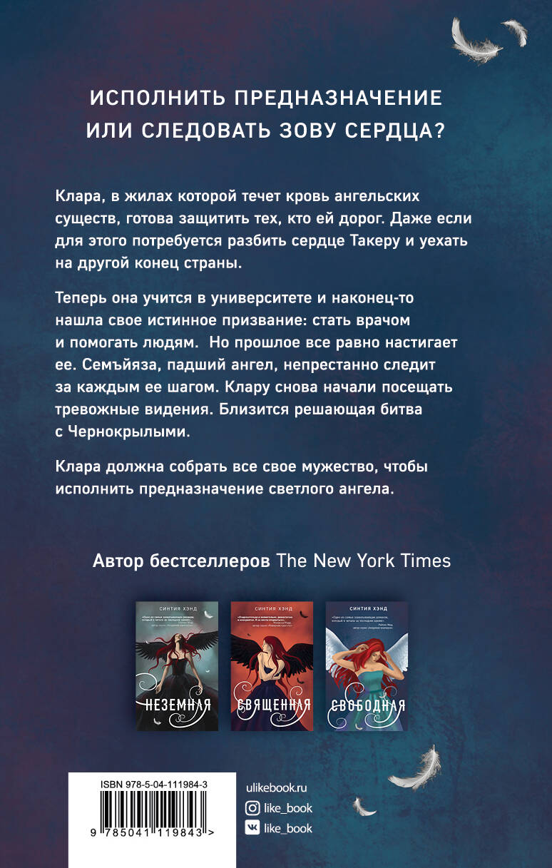Причины для покупки: - Бестселлер The New York Times. - Трилогия переведена на 16 языков. - Более 44 изданий и переизданий по всему миру. - Заключительная часть трилогии. Вы узнаете, в чем же заключается истинное предназначение ангела-полукровки Клары и кого из двух парней она выберет. - Эту трилогию рекомендует сама Райчел Мид, автор бестселлера «Академия вампиров».| Издательство | ООО "Издательство "Эксмо" |