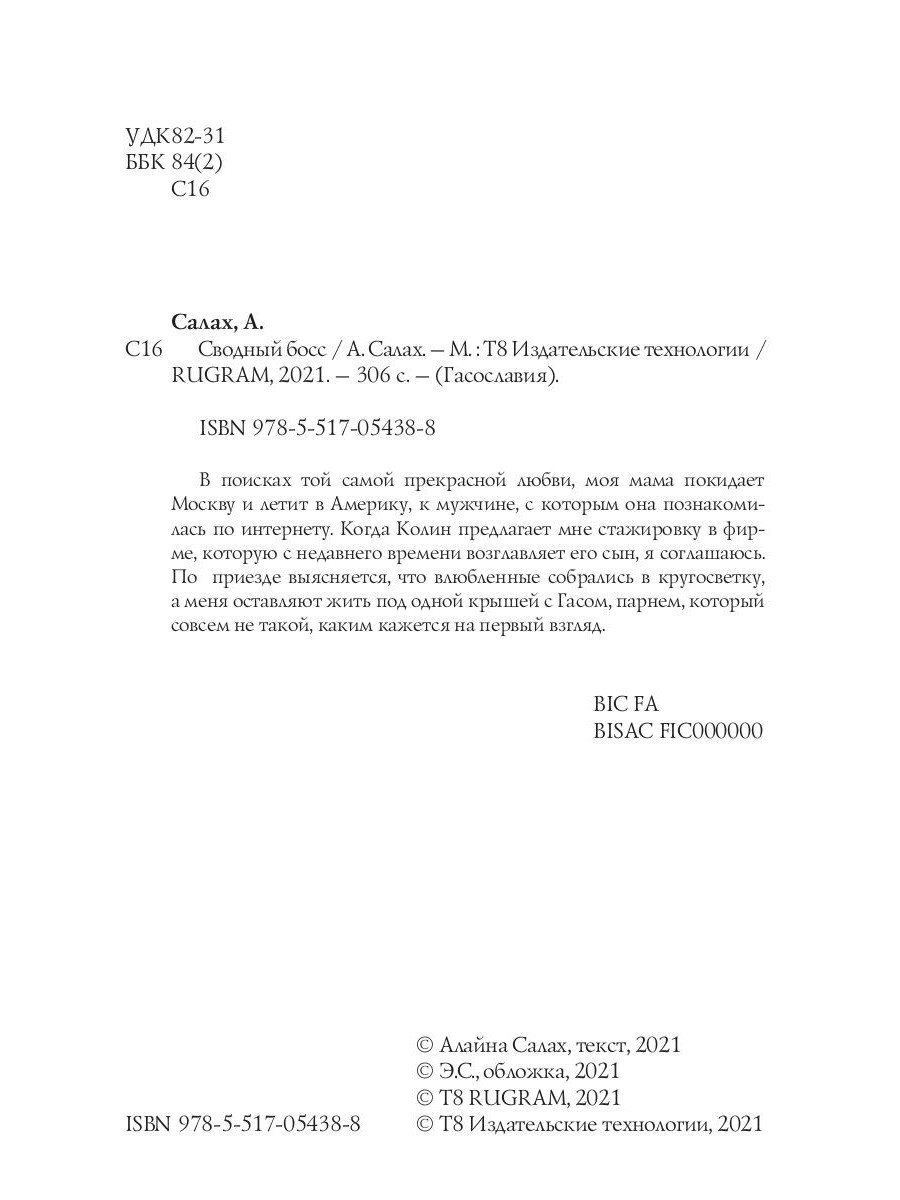 В поисках той самой прекрасной любви, моя мама покидает Москву и летит в Америку, к мужчине, с которым она познакомилась по интернету. Когда Колин предлагает мне стажировку в фирме, которую с недавнего времени возглавляет его сын, я соглашаюсь. По приезде выясняется, что влюбленные собрались в кругосветку, а меня оставляют жить под одной крышей с Гасом, парнем, который совсем не такой, каким кажется на первый взгляд.| Издательство | Т8 RUGRAM |