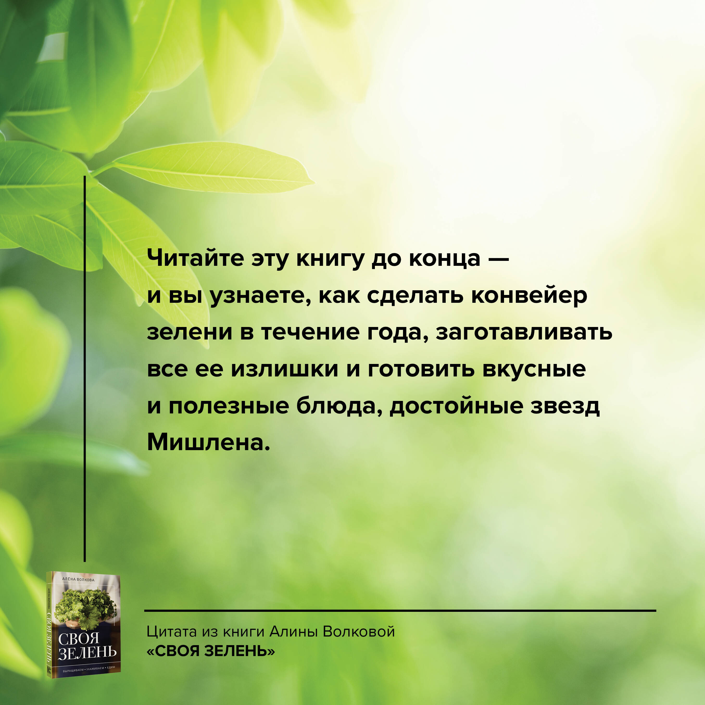 Думаете, свежая зелень бывает только летом? Вы хотите радовать себя и свою семью натуральными витаминами даже зимой, но качество и ассортимент зелени в магазине и на рынке оставляет желать лучшего? С новой книгой Алены Волковой «Своя зелень. Выращиваем, ухаживаем и едим» вы научитесь самостоятельно выращивать зелень круглый год даже, если у вас нет огорода. Начните с самых «детских» вариантов - микрозелени или кресс-салата. В книге вы найдете советы от кандидата биологических наук, садовода с 10-летним стажем, автора канала на ютуб «Аленин сад» Алены Волковой. Рекомендации Алены помогут вам выращивать как распространенные виды микрозелени, вроде лука, редиса, базилика или брокколи, так и редкие виды, например, настурцию, лебеду или овес. Овладеть искусством выращивания домашней зелени сможет каждый! На страницах книги вы найдете простые способы для новичков, например, выращивание зелени из остатков, и способы более замысловатые, для профессионалов или тех, кто хочет превратить свое зеленое увлечение в бизнес.