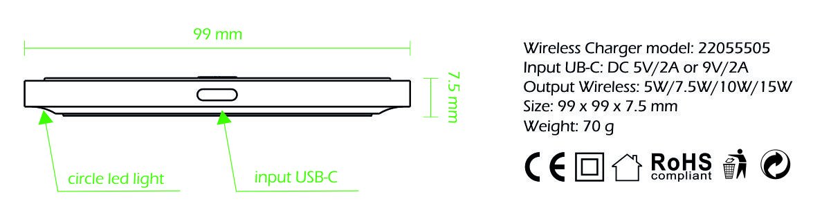 Swissten 15W Беспроводное зарядное устройство с USB-C 1.5m кабелем