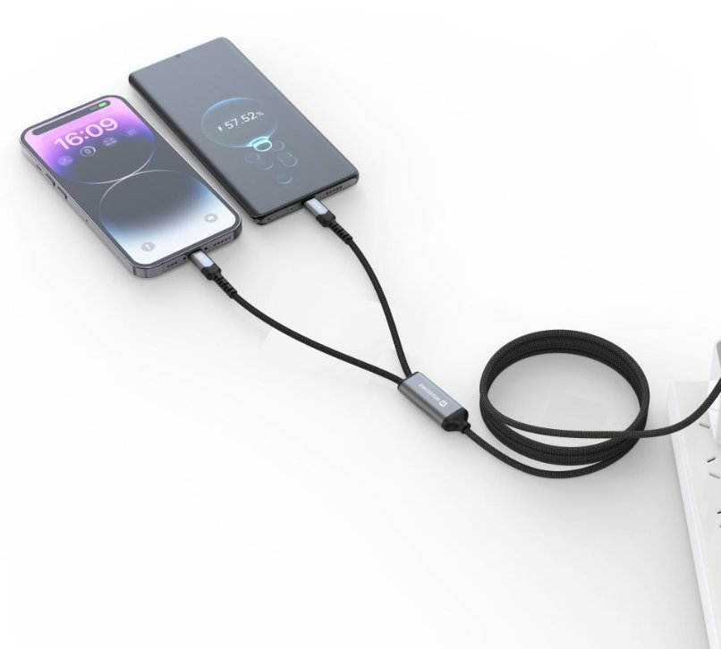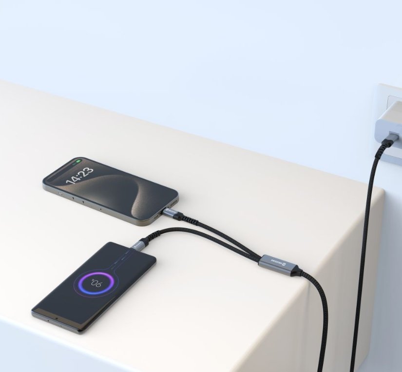 Одновременная зарядка двух устройств с распределением мощности 50 Вт + 50 Вт.