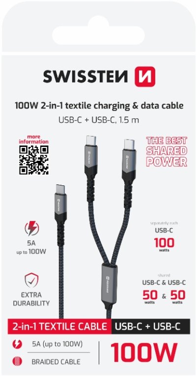 Кабель оснащён прочной текстильной оплеткой, обеспечивающей долгий срок службы даже при ежедневном использовании.