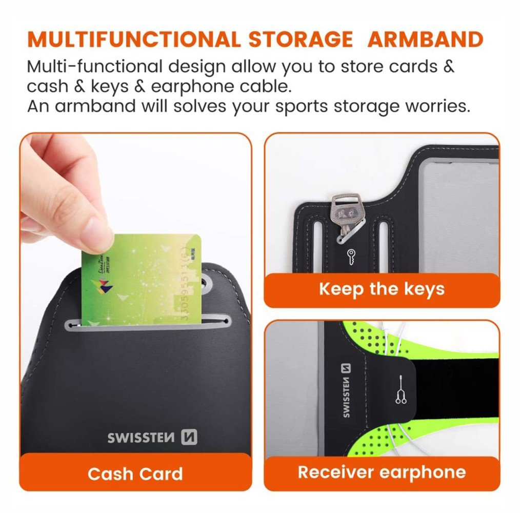 SWISSTEN ARMBAND case - легкий спортивный чехол для вашего смартфона с отверстием для наушников, светоотражающими элементами и карманом для ключей. Упаковано в розничную упаковку SWISSTEN.