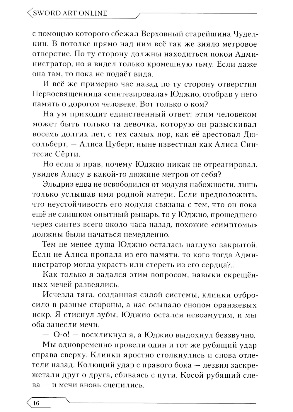 Белоснежная башня Центрального собора - символ власти Церкви Аксиом. Заручившись помощью мудрой Кардинал, живущей в отрезанной от мира библиотеке, Юджио и Кирито направляются на самый верхний, сотый этаж собора, где их поджидает Первосвященница Администратор. Юджио стремится туда, чтобы превратить Алису из рыцаря единства в того, кем она должна быть; а Кирито - чтобы спасти Андерворлд от гибели. Но на девяносто девятом этаже перед Кирито и Алисой появляется Юджио в доспехах рыцаря единства и с ледяным блеском в глазах. Юджио без малейших колебаний выхватывает клинок, и Кирито вынужден защищаться. Неужели настало время битвы, которую он предчувствовал, ещё когда услышал далёкие раскаты грома в день начала путешествия? Достучатся ли отчаянные мольбы Кирито до души Юджио? Окончание подцикла «Мир людей» цикла «Алисизация»!| Издательство | ИД Истари Комикс |