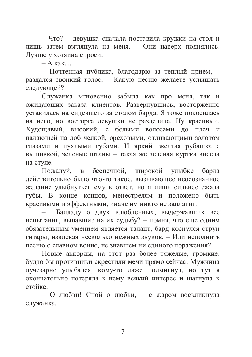 Рискнуть всем, оставить приемную семью и сбежать из дома? Оказаться ограбленной и брошенной друзьями? Я думала, что судьба уже ничем не сможет меня удивить, но у этой дамы оказались припрятаны козыри в рукаве. Переступая порог трактира, я собиралась выпить чая и менее всего ожидала, что угожу в сети красавца - менестреля. Что это - магия, чья-то злая шутка или знак свыше? Я разберусь и обязательно найду ответ, пусть для этого придется сменить особняк на улицу, а пышное платье на наряд танцовщицы. Ведь не может быть, чтобы музыка настолько кружила голову. Или дело не только в ней?| Издательство | Т8 RUGRAM |