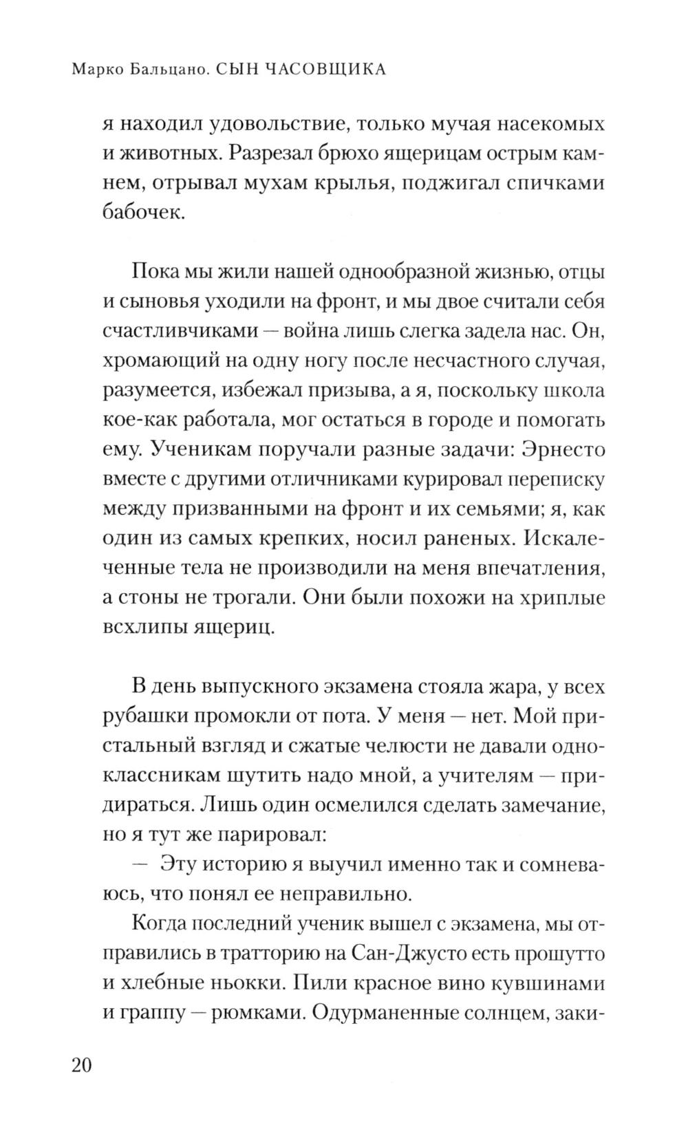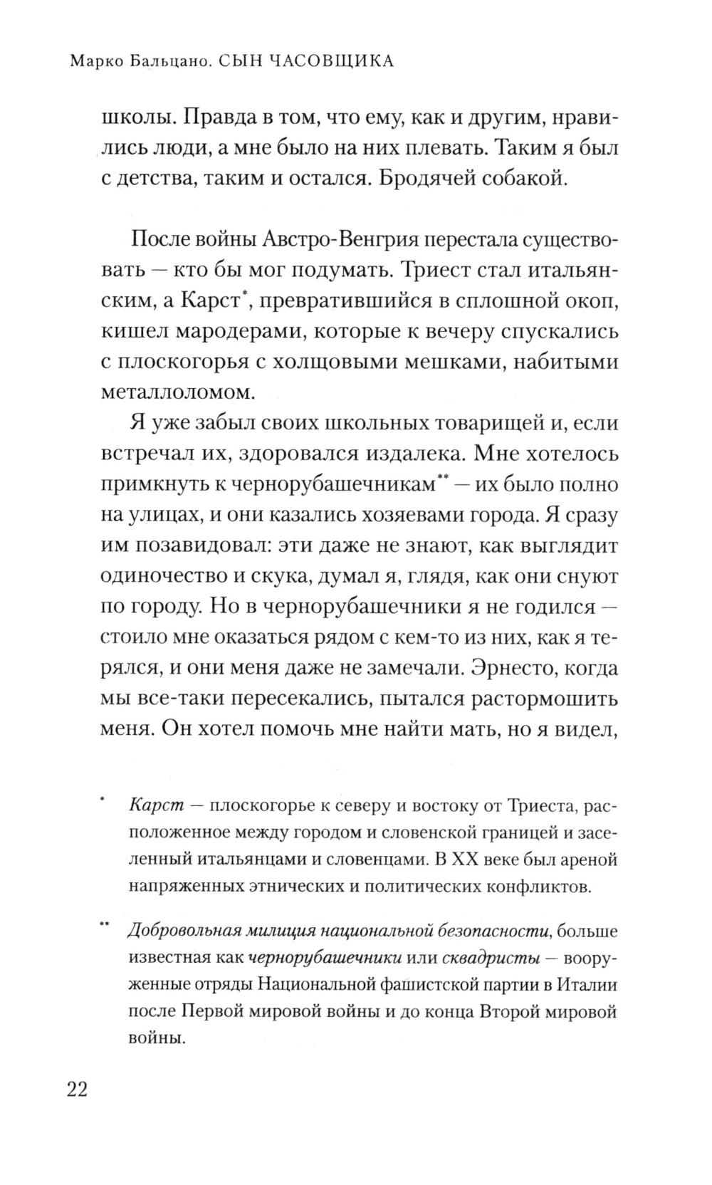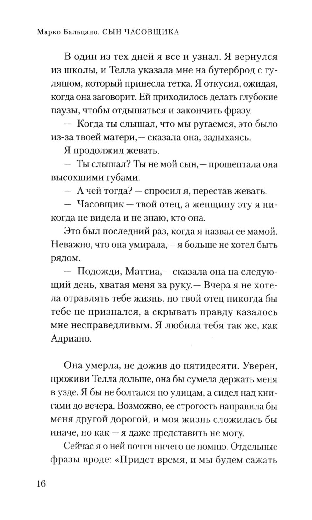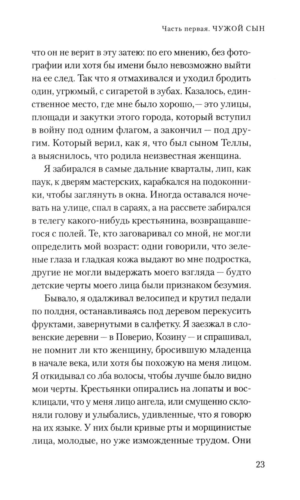 Большая история подобна воронке, которая поглощает людей, - это хорошо знают ровесники ХХ века, появившиеся на свет для новой прекрасной жизни, но попавшие в самые драматические обстоятельства. Великолепный Марко Бальцано всматривается в Италию времен правления Муссолини. Его герой, родившийся в 1900 году - молодой человек, а затем и взрослый мужчина, с ангельским лицом и светлыми волосами, получивший прозвище Малыш. Он безутешно ищет мать, ведь его отец, простой часовщик из Триеста, не желает ничего о ней рассказывать. Кажется, в своих поисках Малыш доходит до самого страшного и берёт в руки оружие. Но разве даже там, где разворачивается бескомпромиссная борьба за выживание, не остается места для очищающего света родительской любви?