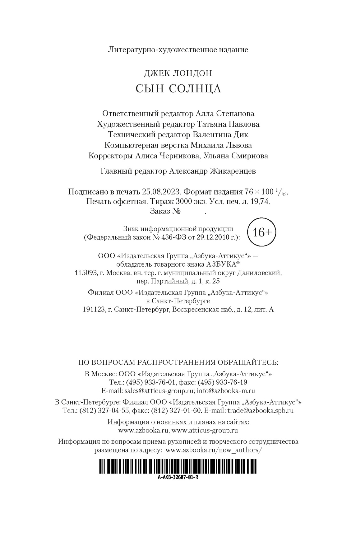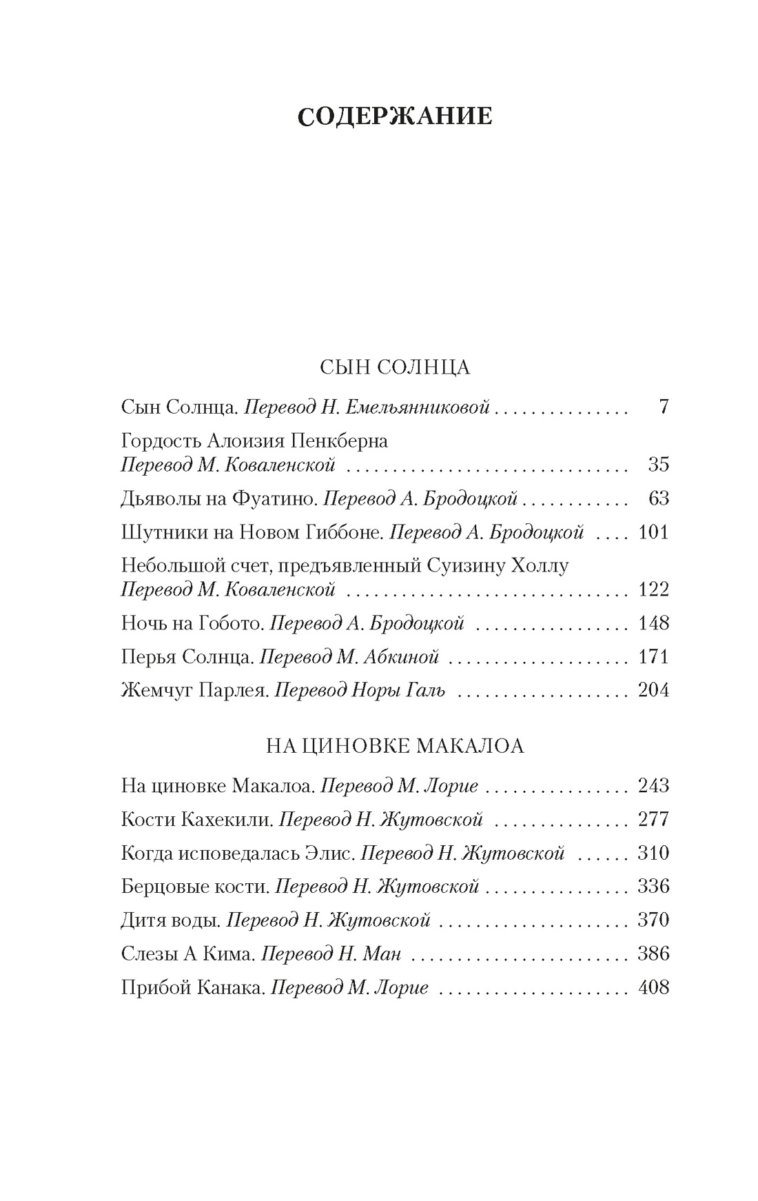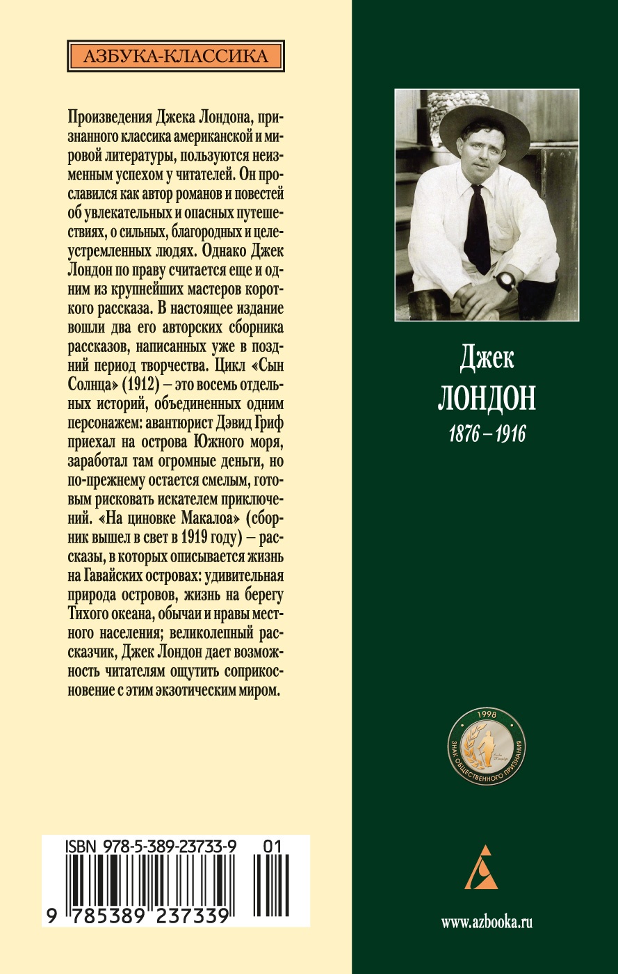 Произведения Джека Лондона, признанного классика американской и мировой литературы, пользуются неизменным успехом у читателей. Он прославился как автор романов и повестей об увлекательных и опасных путешествиях, о сильных, благородных и целеустремленных людях. Однако Джек Лондон по праву считается еще и одним из крупнейших мастеров короткого рассказа. В настоящее издание вошли два его авторских сборника рассказов, написанных уже в поздний период творчества. Цикл «Сын Солнца» (1912) - это восемь отдельных историй, объединенных одним персонажем: авантюрист Дэвид Гриф приехал на острова Южного моря, заработал там огромные деньги, но по-прежнему остается смелым, готовым рисковать искателем приключений. «На циновке Макалоа» (сборник вышел в свет в 1919 году) - рассказы, в которых описывается жизнь на Гавайских островах: удивительная природа островов, жизнь на берегу Тихого океана, обычаи и нравы местного населения; великолепный рассказчик, Джек Лондон дает возможность читателям ощутить соприкосновение с этим экзотическим миром.| Издательство | Азбука |