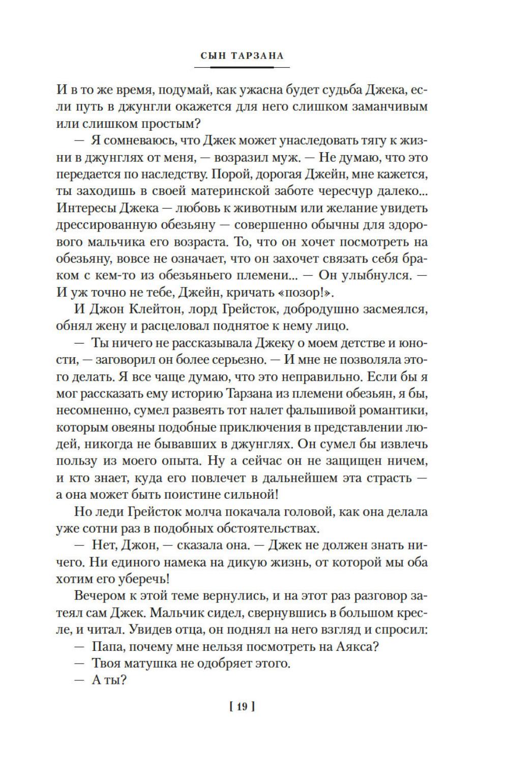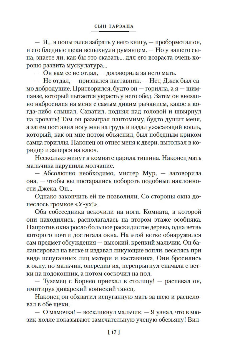 Будущий автор историй о Тарзане Эдгар Райс Берроуз появился на свет 150 лет назад. Бизнесмен-неудачник, пробуя свои силы на литературном поприще, вряд ли догадывался, какая грандиозная судьба предопределена его детищу. Образ феноменально сильного, неотразимо привлекательного, неустрашимого и исключительно благородного наследника аристократической семьи, воспитанного в диких джунглях, быстро завоевал симпатии читателей и стал провозвестником грядущей культуры супергероев. В настоящее издание вошли четвертый и пятый романы из цикла о Тарзане - «Сын Тарзана» и «Тарзан и сокровища Опара», а также сборник рассказов «Истории из джунглей», повествующих о подростковых и юношеских годах лорда Грейстока, проведенных в племени гигантских человекообразных обезьян (согласно порядку публикации он занимает шестое место в цикле). Со времени событий, описанных в романе «Тарзан и его звери», прошло около десяти лет. Тарзан, благодаря своей невероятной способности приспосабливаться к любым условиям, вполне освоился с жизнью в цивилизованном Лондоне и привык называться настоящим именем - Джон Клейтон, лорд Грейсток. У них с Джейн подрастает сын Джек, и, казалось бы, ничто не способно поколебать наконец обретенных покоя и благополучия семьи. Но совсем скоро эта безмятежная жизнь будет нарушена почти невероятным явлением гостя из прошлого и последующими драматичными событиями... Роман «Сын Тарзана» и сборник рассказов «Истории из джунглей» публикуются в новых переводах.| Издательство | Азбука |