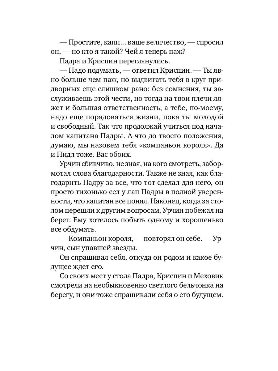 Первая книга цикла «Летопись Туманного острова» о благородном и бесстрашном Урчине, который смог изменить историю целого королевства. Бельчонок Урчин родился в холодную и ненастную Ночь падающих звезд. С самого первого дня жизнь этого малыша была полна загадок и таинственных предзнаменований. Когда Урчин вырос, ему посчастливилось попасть на королевскую службу. Но трагические события в замке грозят королевству и самому Урчину большой бедой. Сможет ли бельчонок, упавший с неба, спасти своих друзей и узнать, что же на самом деле ему готовит судьба?| Издательство | Рипол Классик |