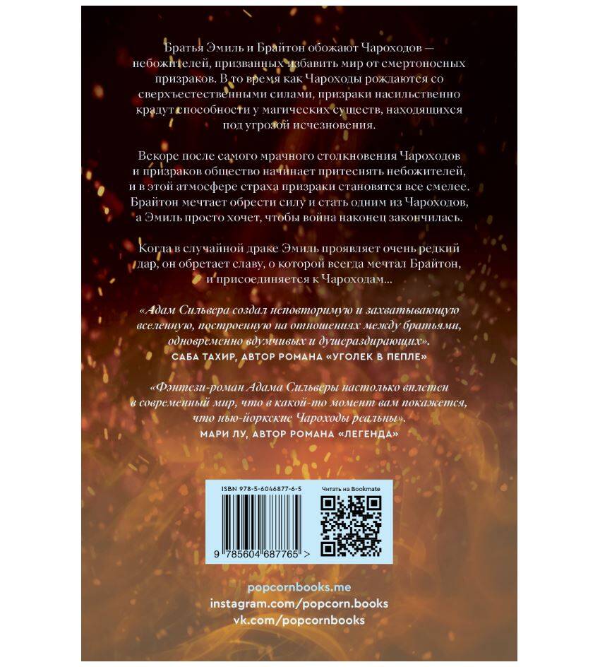 Братья Эмиль и Брайтон обожают Чароходов - небожителей, призванных избавить мир от смертоносных призраков. В то время как Чароходы рождаются со сверхъестественными силами, призраки насильственно крадут способности у магических существ, находящихся под угрозой исчезновения. Вскоре после самого мрачного столкновения Чароходов и призраков общество начинает притеснять небожителей, и в этой атмосфере страха призраки становятся все смелее. Брайтон мечтает обрести силу и стать одним из Чароходов, а Эмиль просто хочет, чтобы война наконец закончилась. Когда в случайной драке Эмиль проявляет редкий дар, он обретает славу, о которой всегда мечтал Брайтон, и присоединяется к Чароходам...| Издательство | ИНДИВИДУУМ ПРИНТ ООО |
