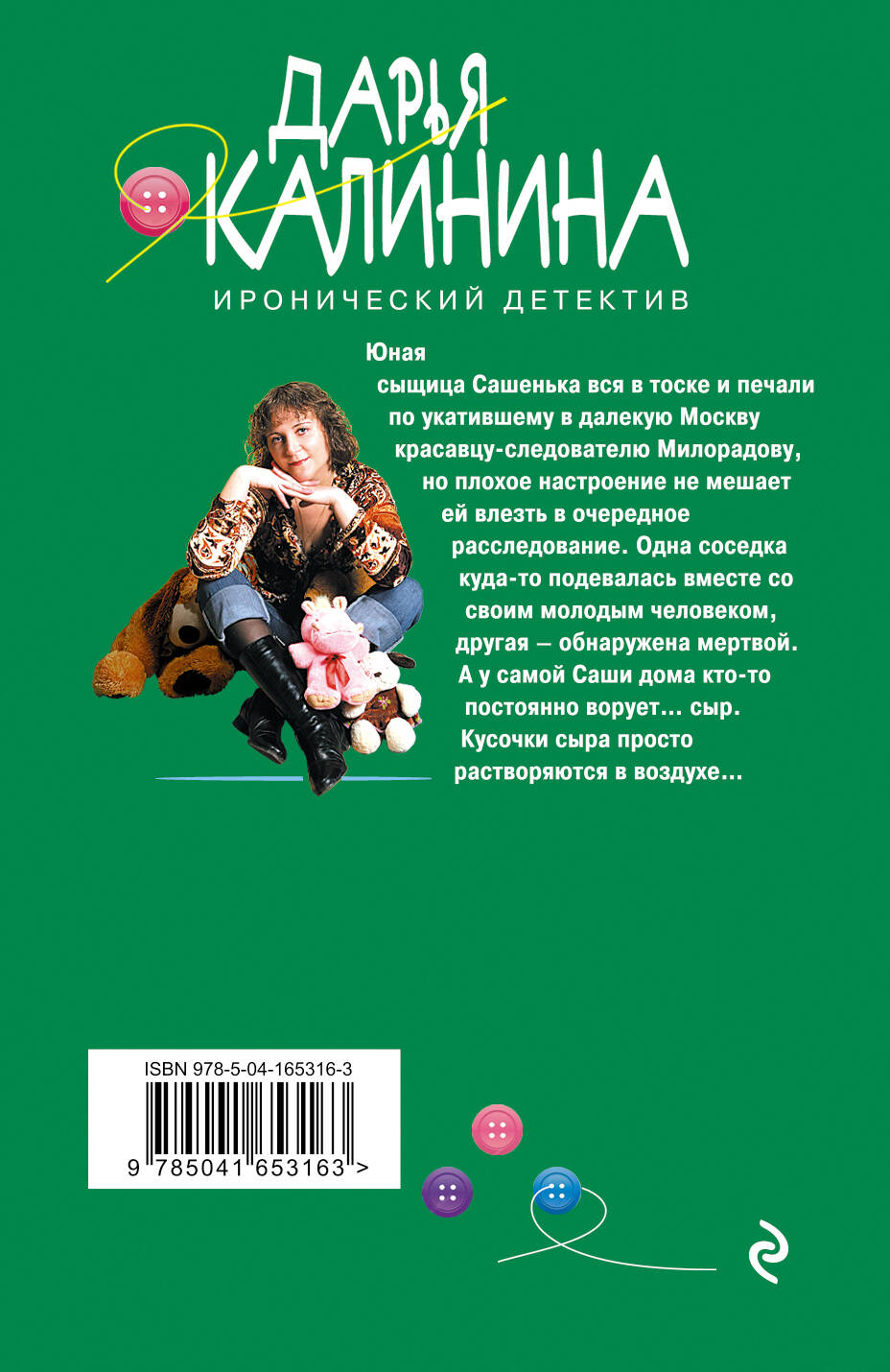 Юная сыщица Сашенька вся в тоске и печали по укатившему в далекую Москву красавцу-следователю Милорадову, но плохое настроение не мешает ей влезть в очередное расследование. Одна соседка куда-то подевалась вместе со своим молодым человеком, другая - обнаружена мертвой. А у самой Саши дома кто-то постоянно ворует… сыр. Кусочки сыра просто растворяются в воздухе… Новый роман «Сырный вор» продолжает цикл книг о неугомонной молодой сыщице Сашеньке, по уши влюбленной в красавца-следователя Милорадова. Удастся ли Саше найти пропавшую соседку и узнать, кто украл весь сыр из холодильника, - обо всем этом читайте в новом захватывающем детективе Дарье Калининой.| Издательство | Эксмо |