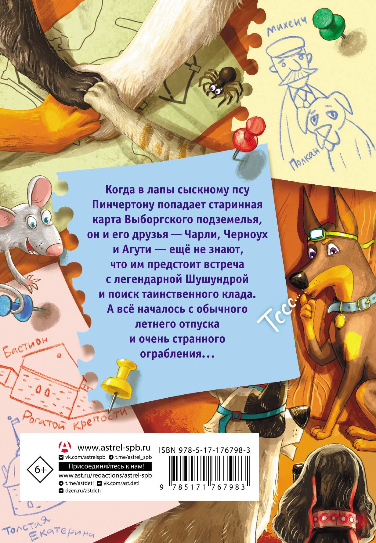 Когда в лапы сыскному псу Пинчертону попадает старинная карта Выборгского подземелья, он и его друзья: Чарли, Черноух и Агути, ещё не знают, что им предстоит встреча с легендарной Шушундрой и поиск таинственного клада. А всё началось с обычного летнего отпуска и очень странного ограбления.| Издательство | Издательство "АСТ" |