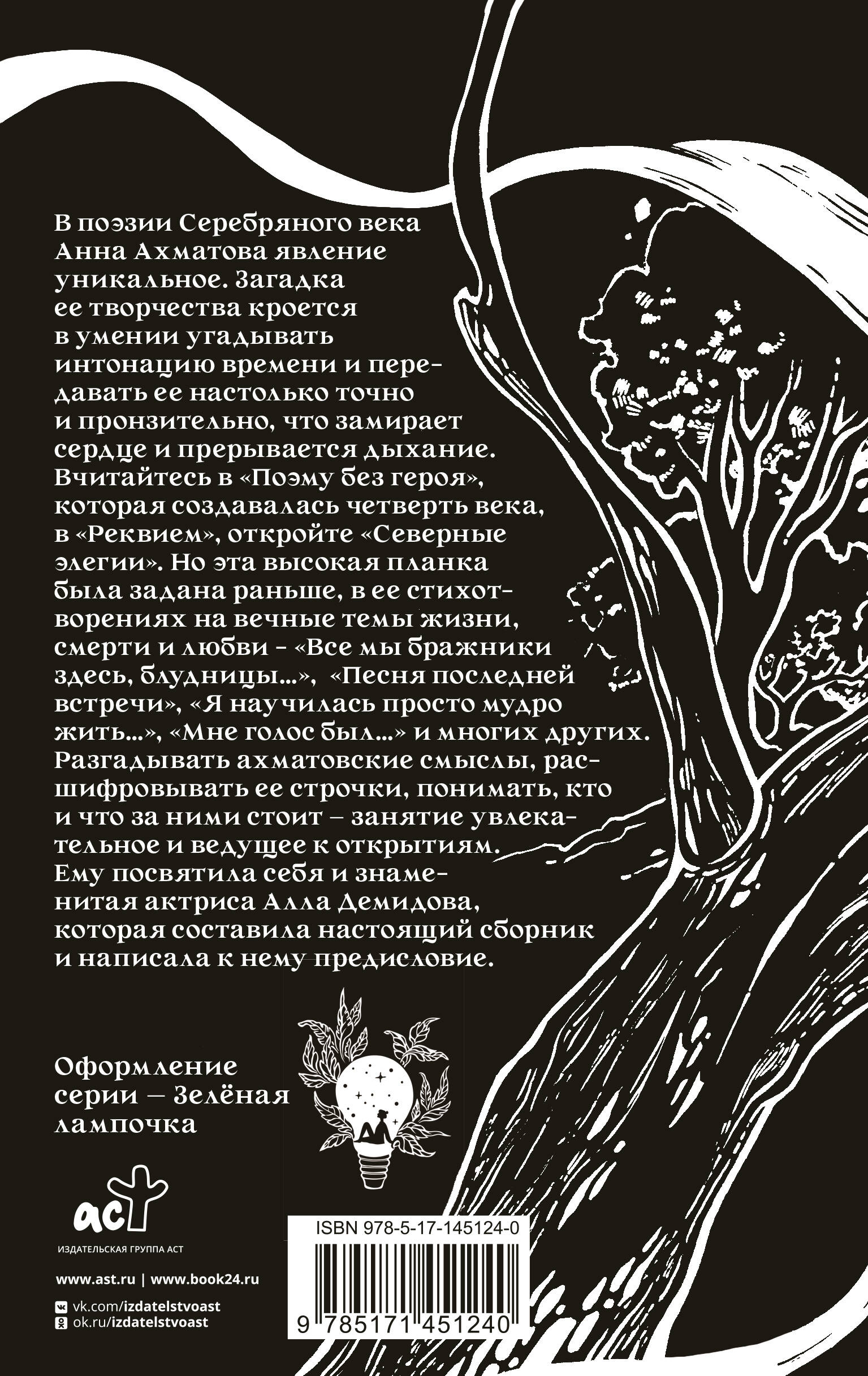 В поэзии Серебряного века Анна Ахматова явление уникальное. Загадка ее творчества кроется в умении угадывать интонацию времени и передавать ее настолько точно и пронзительно, что замирает сердце и прерывается дыхание. Вчитайтесь в "Поэму без героя",которая создавалась четверть века, в "Реквием", откройте "Северные элегии". Но эта высокая планка была задана раньше, в ее стихотворениях на вечные темы жизни, смерти и любви - "Все мы бражники здесь, блудницы…", "Песня последней встречи", "Я научилась просто мудро жить…", "Мне голос был…" и многих других. Разгадывать ахматовские смыслы, расшифровывать ее строчки, понимать, кто и что за ними стоит - занятие увлекательное и ведущее к открытиям. Ему посвятила себя и знаменитая актриса Алла Демидова, которая составила настоящий сборник и написала к нему предисловие.| Издательство | ИЗДАТЕЛЬСТВО "АСТ" |