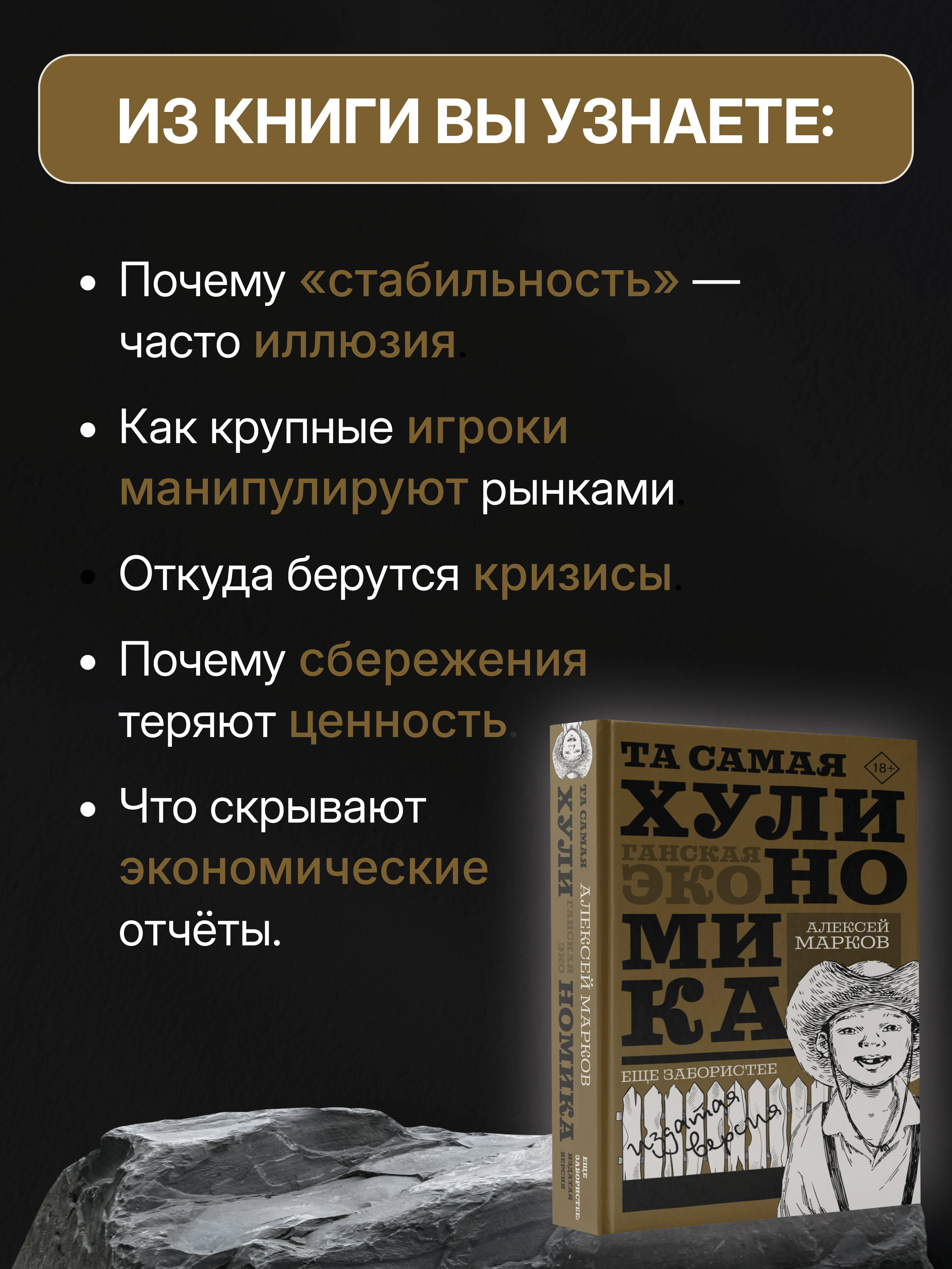 Возвращение легендарного учебника для тех, кто не любит учиться по скучным талмудам! Экономика - это очень скучно. Куча непонятных заумных слов и формул? Кто вам такое сказал? Экономика это интересно и просто! Вы просто не знаете, с каким соусом ее нужно подавать, на какой стороне пережевывать и долго ли жевать. Все базовые знания о ней и много больше вы получите из книги "Хулиномика", а также найдете немало интересных ответов на вопросы по типу: • Как появилась биржа, и почему в России она круче? • Кого облапошила английская королева? • Как скверные люди становятся директорами? • Что такое акции и что с их прелестью можно делать? • Как может Павел Дуров купить "Гугл" целиком? • Зачем ЦРУ запрещало шорты? • Почему только ламантины и гадалки предсказывают рынок? У Алексея Маркова есть для вас чит-коды. Возьмите в руки книгу, перелистывайте страницы и впитывайте! Самая забористая и крепкая версия, теперь в золотом оформлении.| Издательство | Издательство "АСТ" |