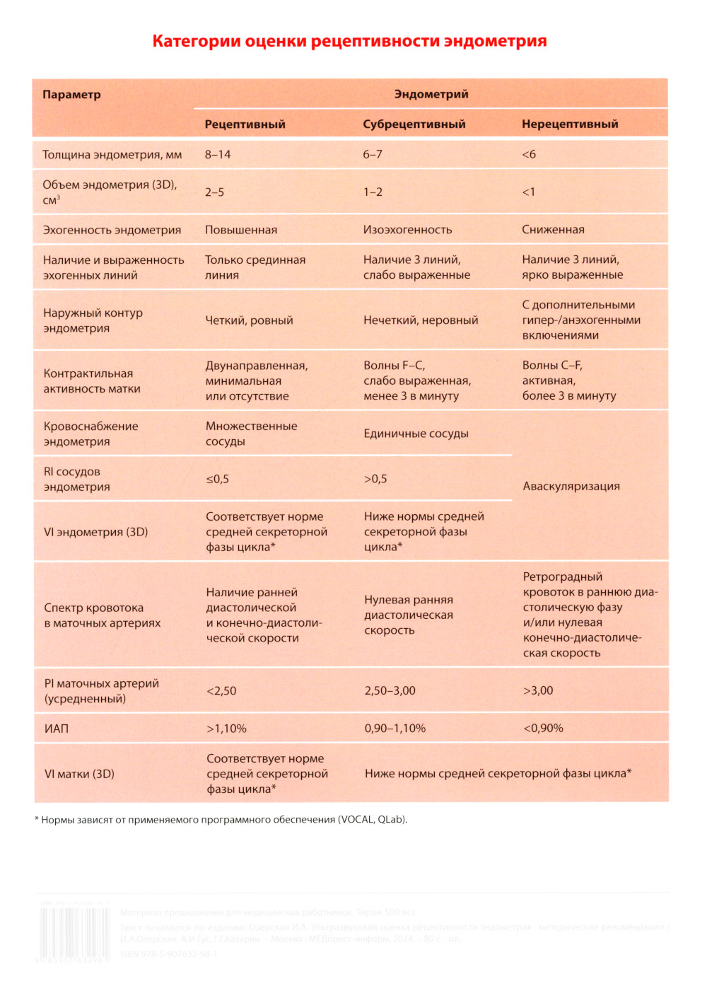 Наглядное пособие содержит таблицу категорий оценки рецептивности эндометрия. Текст печатается по изданию: Озерская И.А., Гус А.И., Ультразвуковая оценка рецептивности эндометрия: методические рекомендации. Материал предназначен для медицинских работников.| Издательство | МЕДпресс-информ |