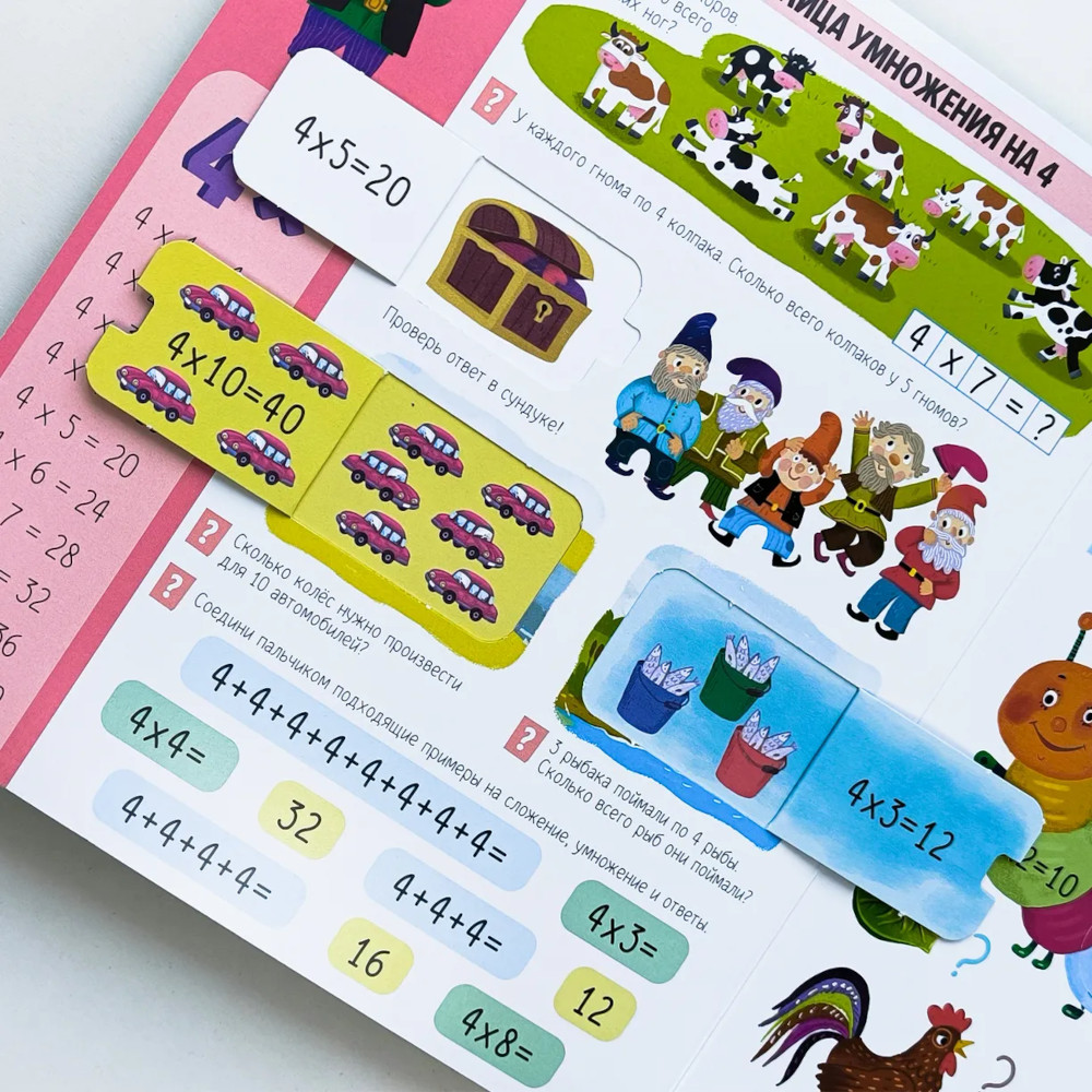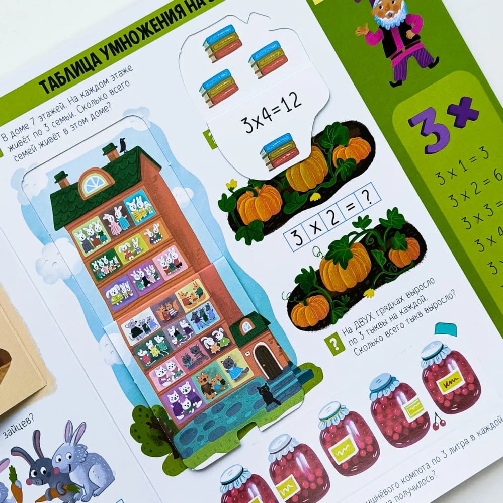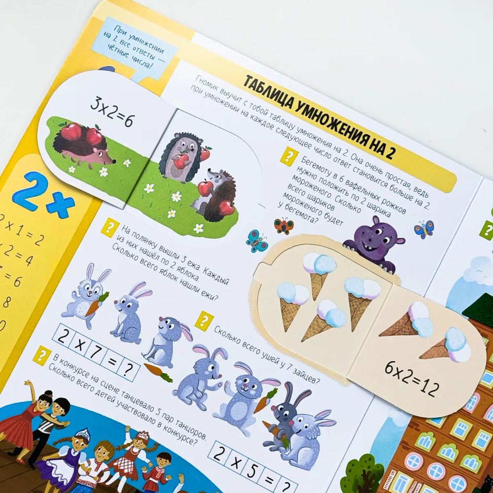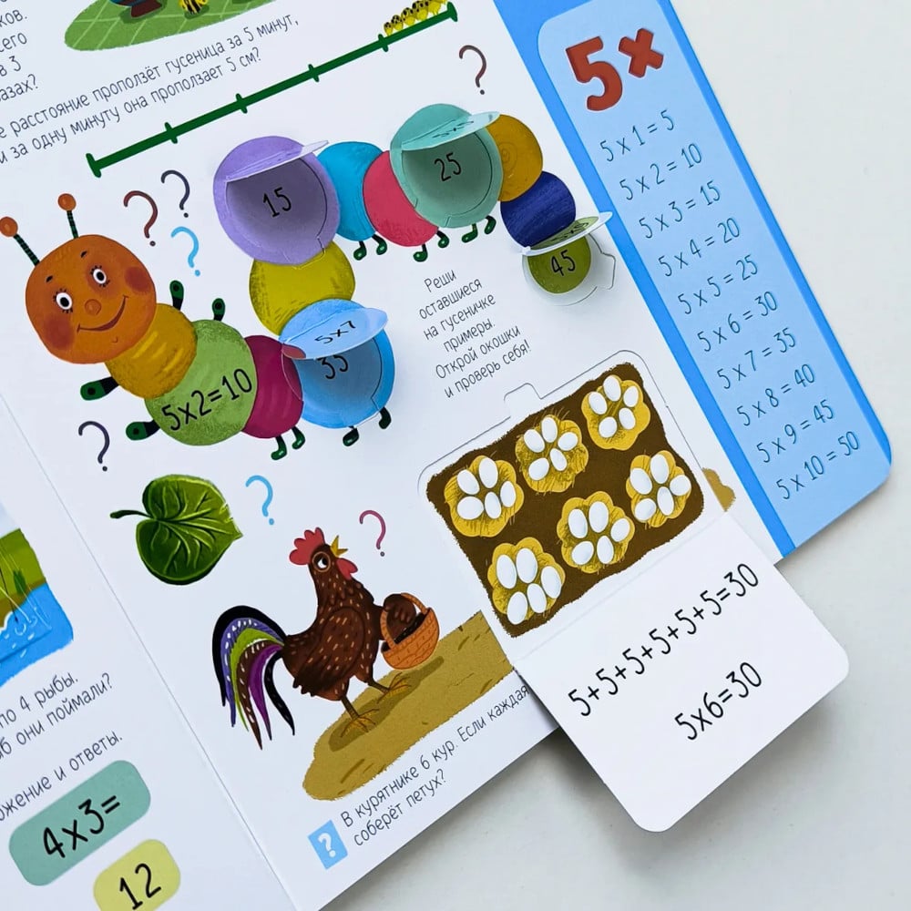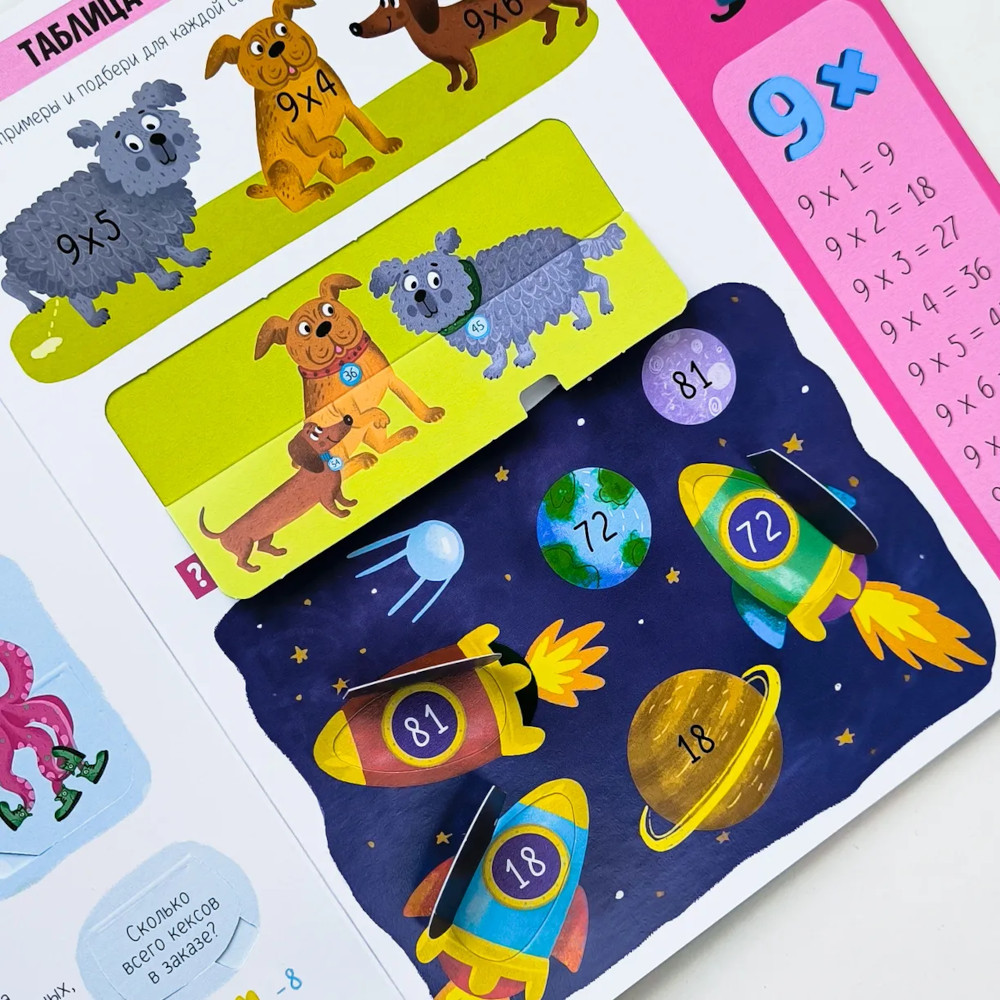 Книжка с окошками «Таблица умножения» - книга-открытие для любознательных малышей. Внутри их ждёт первое погружение в мир арифметики и простые и интересные задания, которые помогут с лёгкостью научиться умножению, не зазубрить, а понять таблицу. Регулярные занятия с этим тренажером помогут вашему ребенку успешно изучать математику на протяжении всей начальной школы. Подготовка к обучению в школе для детей 8+, 7+ с использованием нашего пособия пройдет легко и интересно, ведь это полноценная нейрогимнастика. Ребенок приобретает навык, с которым будет полностью освоена таблица умножения. Разнообразные упражнения и задания помогут ребёнку сосредоточиться и лучше запомнить материал. В книге каждый раздел создан для того, чтобы обучение стало полезным и интересным занятием для ребенка. Тренажер содержит не только методику по быстрому умножению, но и различные игры для детей и задания для развития памяти, внимания и логического мышления. Внутри - 12 красочных страниц и 66 окошек разной формы, в которых содержатся решения к задачкам и примерам - с их помощью ребёнок сможет проверить себя.
