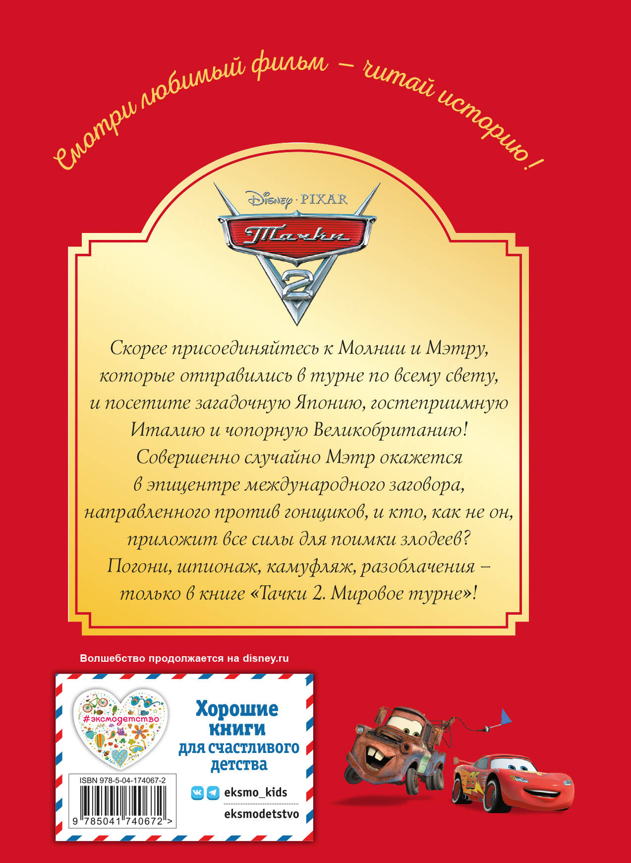 Истории про тачек это истории о дружбе и понимании, соперничестве и поддержке. Приключения, путешествия, опасности - главных героев ждёт много испытаний, во время которых юным читателям и слушателям не будет скучно! Кто стоит во главе мирового заговора, направленного против гонщиков? Легко ли быть секретным агентом? Как победить соперника, который так же силён, как и ты? Чтобы узнать ответы на эти вопросы, скорее открывайте книгу. «Тачки-2. Мировое турне» - отличный выбор для совместного семейного чтения!