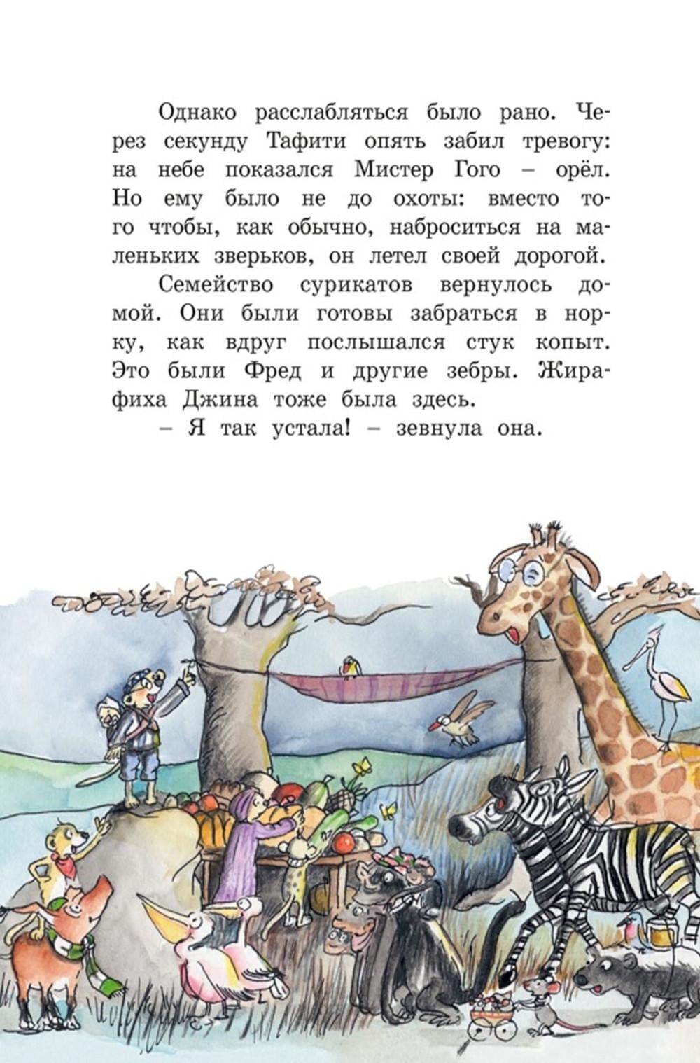 После долгой засухи в саванну пришла беда. Деда готовит всю семью к срочной эвакуации: придётся оставить обжитое место и идти на поиски нового дома. Но Тафити не собирается сдаваться без боя. Чтобы защитить свой дом и спасти друзей он даже готов довериться своему заклятому врагу! Приключения Тафити - это коллекция весёлых увлекательных историй о дружбе и семье для самых любознательных читателей.| Издательство | Махаон |