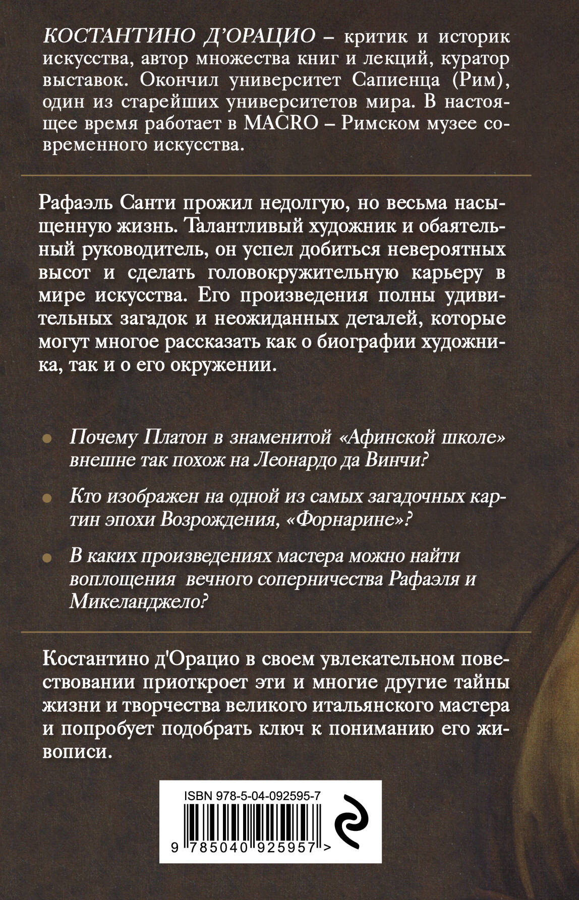 О книге: Рафаэль мог справляться с несколькими масштабными проектами одновременно, успевая при этом продолжать светское общение и работать еще и над другими эскизами в своей мастерской. Он оставил нам множество потрясающих работ, в которых можно порою найти любопытные детали - современники могли узнать в его персонажах известных людей своего времени, в том числе и фигуру самого художника. Для кого эта книга: Увлекательное чтение погрузит вас в мир искусства, даже если вы не являетесь его знатоком. Перед вами откроется множество подробностей и нюансов, которые позволят лучше понимать картины великого мастера.| Издательство | ООО "Издательство "Эксмо" |