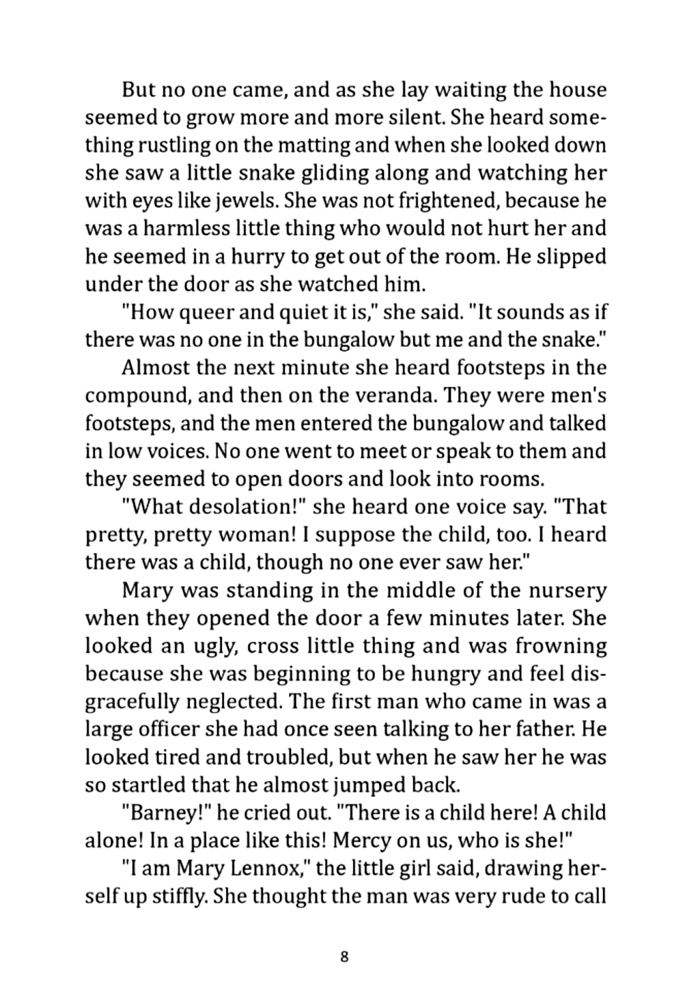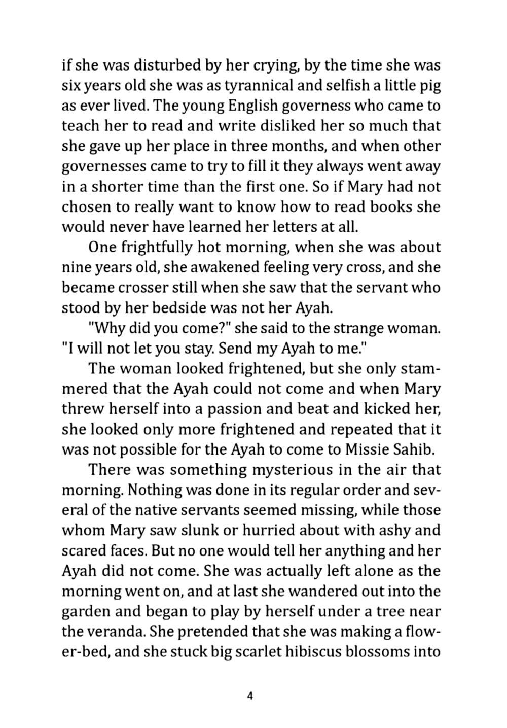 Книга, любимая с детства, основа множества фильмов, сериалов, спектаклей, мюзиклов и мультфильмов. Осиротевшая Мери Леннокс оказывается в особняке своего дяди, постепенно привыкает к новой жизни, учится любить, расцветает и оживает. Однажды Мери и ее новые друзья входят в загадочный старый сад, который был заперт много лет. Им предстоит разгадать тайну этого удивительного места... В книге неадаптированный текст на английском языке без сокращений.| Издательство | Каро |