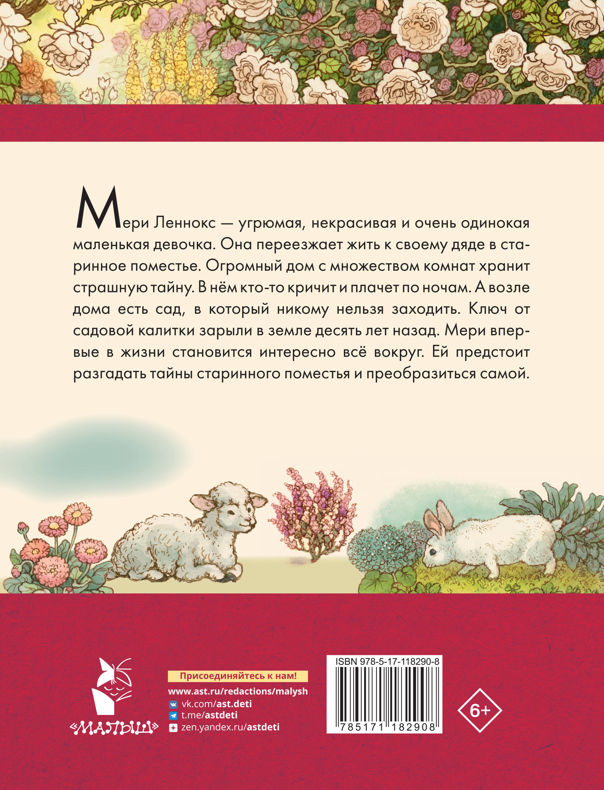 Мери Леннокс - угрюмая, некрасивая и очень одинокая маленькая девочка. Она переезжает жить к своему дяде в старинное поместье. Огромный дом с множеством комнат хранит страшную тайну. В нём кто-то кричит и плачет по ночам. А возле дома есть сад, в который никому нельзя заходить. Ключ от садовой калитки зарыли в земле десять лет назад. Мери впервые в жизни становится интересно всё вокруг. Ей предстоит разгадать тайны старинного поместья и преобразиться самой.| Издательство | ИЗДАТЕЛЬСТВО "АСТ" |