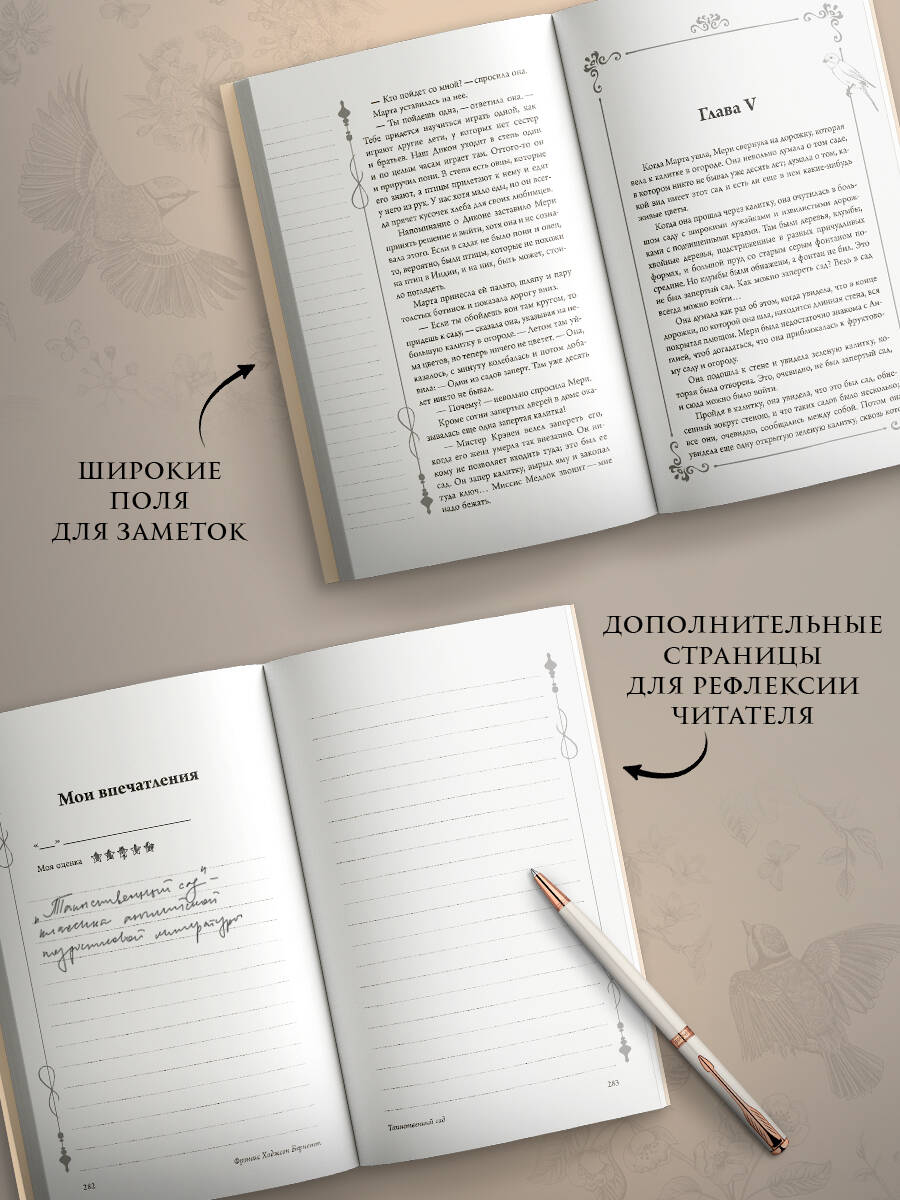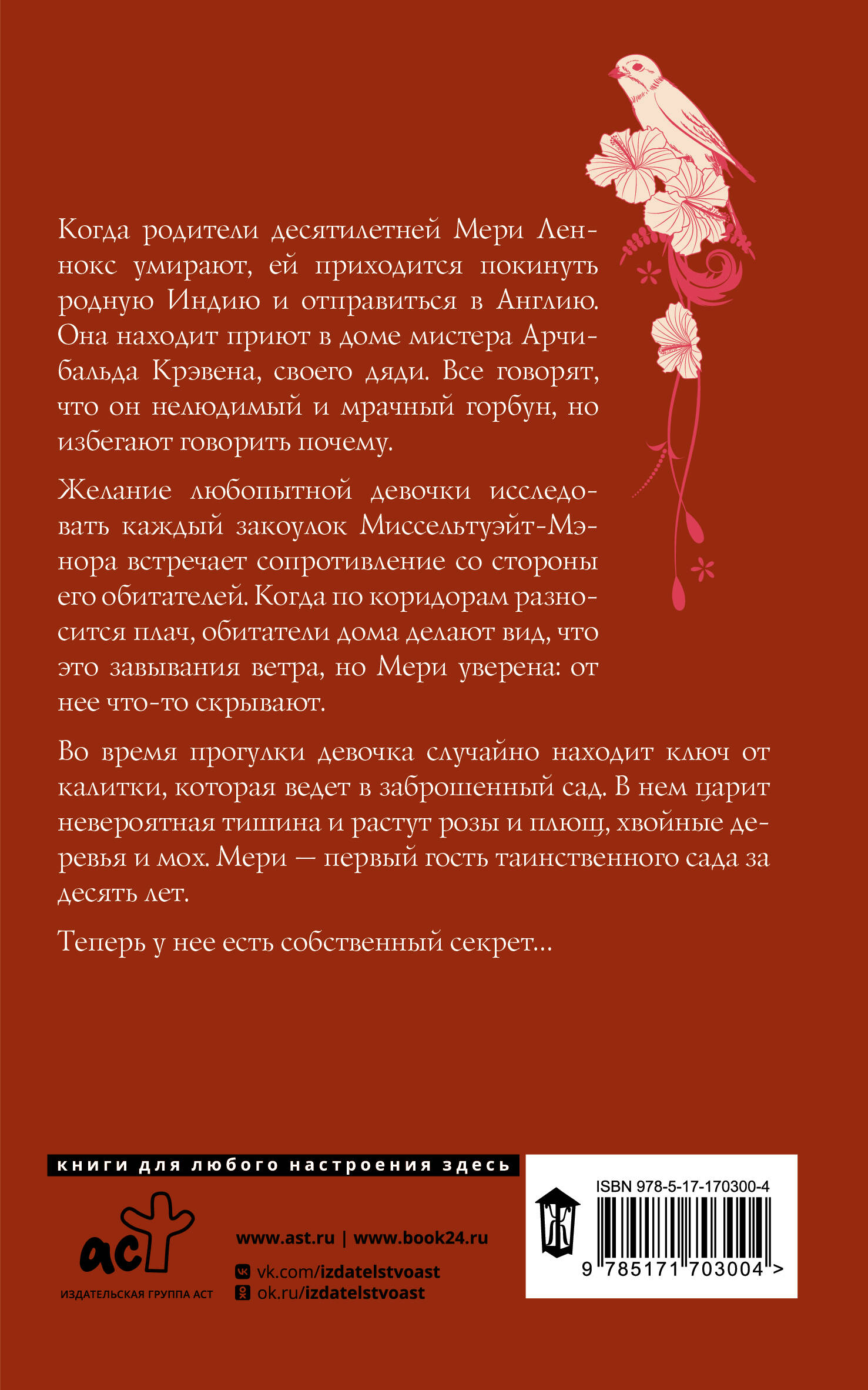 - Великолепное произведение Фрэнсис Ходжсон Бёрнетт, которым зачитываются и взрослые, и дети. - Атмосферная, уютная история, полная чудесных превращений и волшебства. - В 2020 году вышла экранизация повести от режиссера Марка Мандена. Одну из главных ролей сыграл Колин Фёрт («Kingsman: Секретная служба», «Гордость и предубеждение», «Король говорит!»). - Продолжение серии «Классика для себя» - ответ на популярный в соцсетях вопрос «Как лучше читать книги?». Издание содержит страницы с широкими полями для заметок, чистые листы для фиксации эмоций от истории, список персонажей для их оценки и книжные рекомендации. Все это помогает сделать чтение максимально эффективным.| Издательство | Издательство "АСТ" |