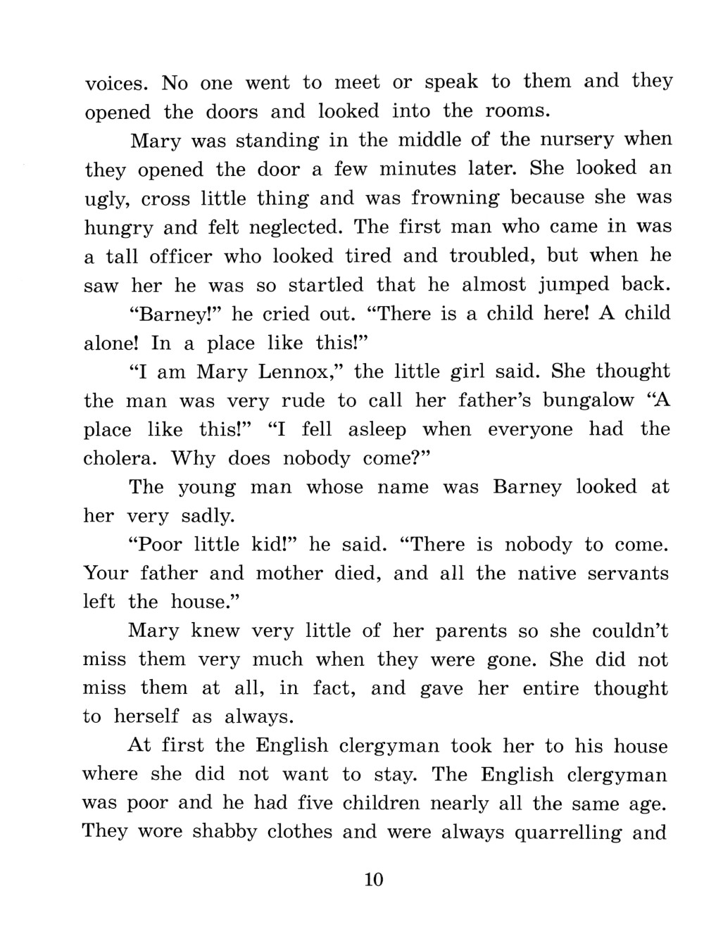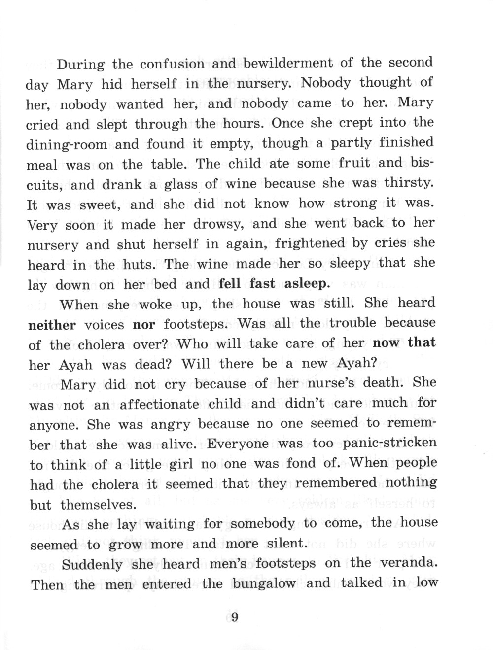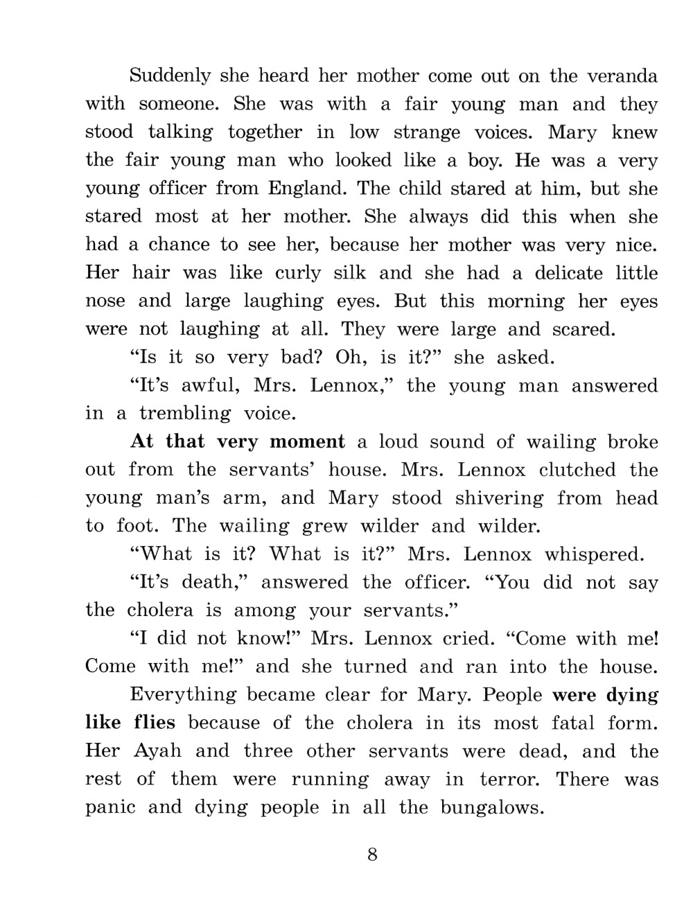 Книга представляет собой адаптацию одного из лучших произведений знаменитой англо-американской детской писательницы Фрэнсис Бернетт «Таинственный сад» о рано осиротевшей девочке по имени Мэри Леннокс, которая волею судьбы оказывается в поместье дяди-опекуна, где однажды находит заброшенный сад. Она начинает ухаживать за садом, и по мере того, как он в ответ на её заботу расцветает и благоухает, Мэри также «расцветает» и «оживает». Из болезненного, эгоистичного и избалованного ребёнка она превращается в здоровую, добрую и отзывчивую девочку. Этот роман о самоисцелении признан одним из самых популярных детских романов в литературе XX века. Текст пособия адаптирован в учебных целях до уровня Elementary. Каждая глава сопровождается комментарием, переводом трудных слов и выражений, а также заданиями с учётом требований ОГЭ. Они направлены не только на проверку понимания текста, но и на отработку лексики, грамматики, а также развитие умений чтения. Упражнения позволяют сформировать и развить коммуникативные компетенции, необходимые для успешной сдачи итогового экзамена в 9 классе. В конце пособия помещены ответы ко всем заданиям, англо-русский словарь, а также тест в формате ОГЭ с ответами. Книга предназначена учащимся 5-9 классов образовательных организаций, а также широкому кругу лиц, изучающих английский язык.| Издательство | Айрис-Пресс |