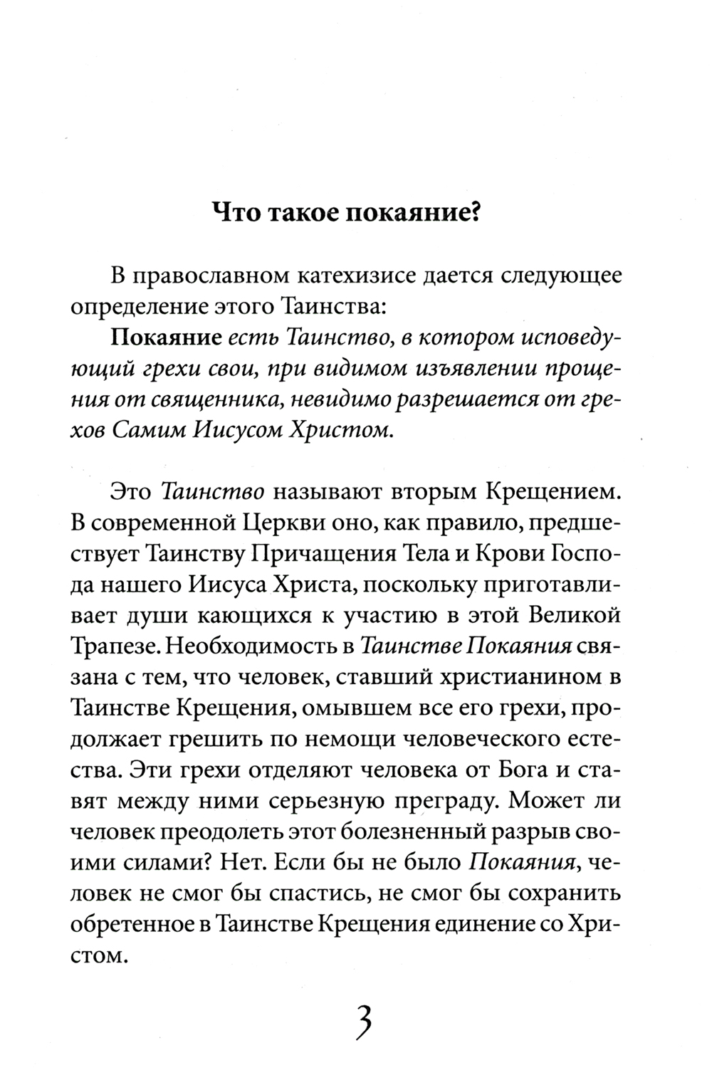 Покаяние есть Таинство, в котором исповедующий грехи свои, при видимом изъявлении прощения от священника, невидимо разрешается от грехов Самим Иисусом Христом. Это Таинство называют вторым Крещением. В современной Церкви оно, как правило, предшествует Таинству Причащения Тела и Крови Господа нашего Иисуса Христа, поскольку приготавливает души кающихся к участию в этой Великой Трапезе. Необходимость в Таинстве Покаяния связана с тем, что человек, ставший христианином в Таинстве Крещения, омывшем все его грехи, продолжает грешить по немощи человеческого естества. Эти грехи отделяют человека от Бога и ставят между ними серьезную преграду. Может ли человек преодолеть этот болезненный разрыв своими силами? Нет. Если бы не было Покаяния, человек не смог бы спастись, не смог бы сохранить обретенное в Таинстве Крещения единение со Христом.| Издательство | Данилов мужской монастырь |
