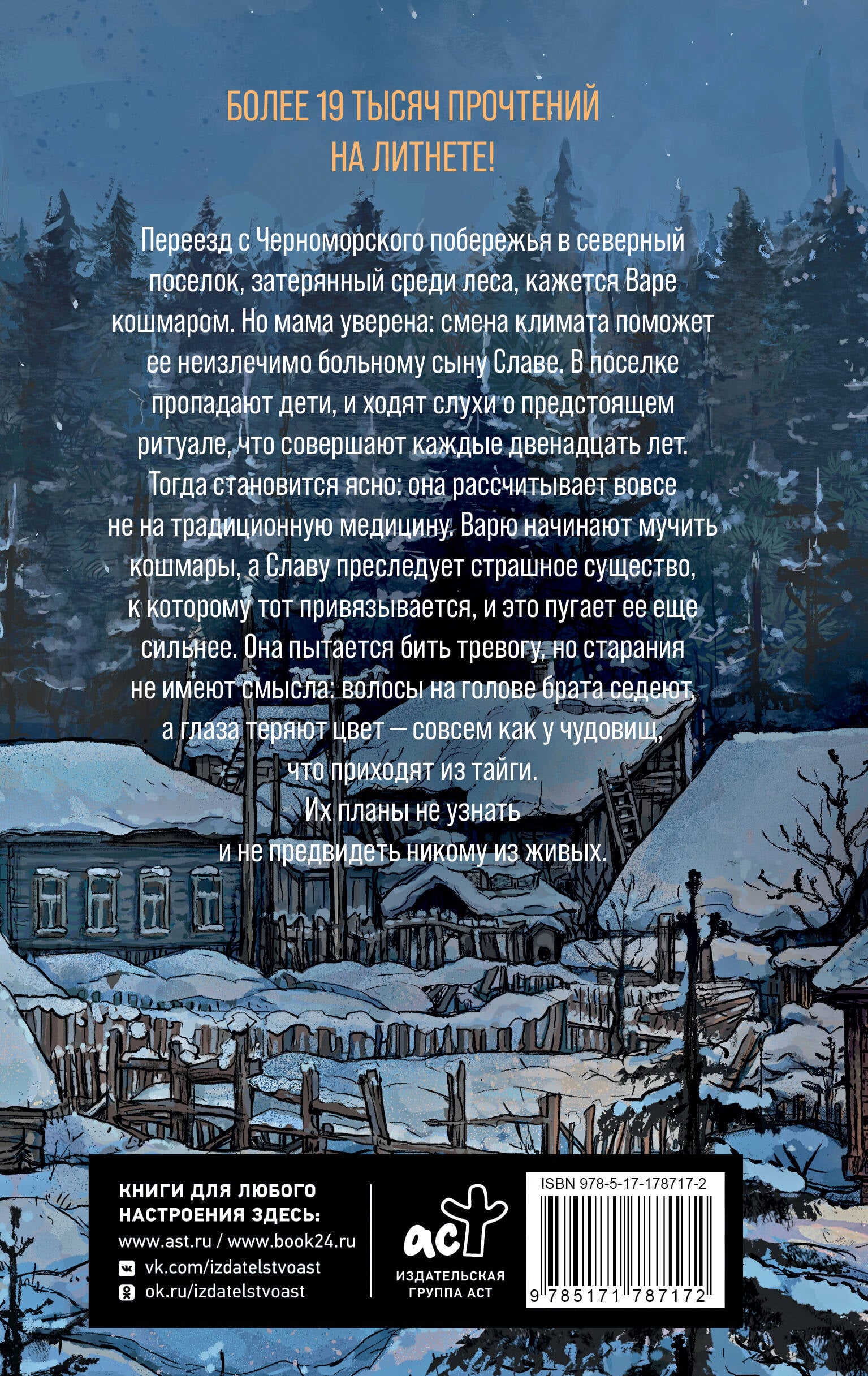 Переезд с Черноморского побережья в северный поселок, затерянный среди леса, кажется Варе кошмаром. Но мама уверена: смена климата поможет ее неизлечимо больному сыну Славе. В поселке пропадают дети, и ходят слухи о предстоящем ритуале, что совершают каждые двенадцать лет. Тогда становится ясно: она рассчитывает вовсе не на традиционную медицину. Варю начинают мучить кошмары, а Славу преследует страшное существо, к которому тот привязывается, и это пугает ее еще сильнее. Она пытается бить тревогу, но старания не имеют смысла: волосы на голове брата седеют, а глаза теряют цвет - совсем как у чудовищ, что приходят из тайги. Их планы не узнать и не предвидеть никому из живых.