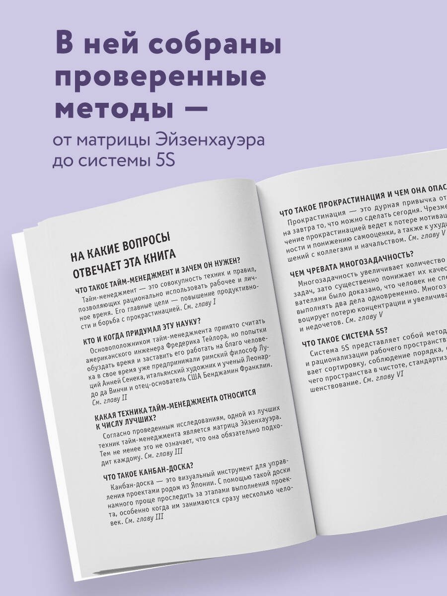 Вы работаете круглые сутки, а количество задач только растет. Откладываете неприятные дела, а потом корите себя за прокрастинацию. Пытаетесь существовать в режиме многозадачности, но ваши ресурсы, кажется, начинают заканчиваться, качество работы падает, и выгорание становится вашим бессменным спутником жизни. Если вы узнали себя - пора знакомиться с основами тайм-менеджмента, которые помогут вам выбраться из круговорота рутины и справиться с до сих пор не подвластной вам лавиной задач. Эта книга покажет вам, как на деле применить простые и проверенные способы распределения времени, научит эффективно расставлять приоритеты и организовывать рабочее пространство, а также расскажет о вреде перфекционизма и о том, как с ним бороться. Задача серии «Энциклопедия быстрых знаний» - рассказать просто, коротко и увлекательно о сложном. Книги послужат отличным источником базовых знаний и донесут общее понимание основных терминов и ключевых моментов в различных областях. Книги будут интересны читателям всех возрастов, решившим расширить свои знания в той или иной области и сделать это в быстрой и увлекательной форме.| Издательство | ООО "Издательство "Эксмо" |
