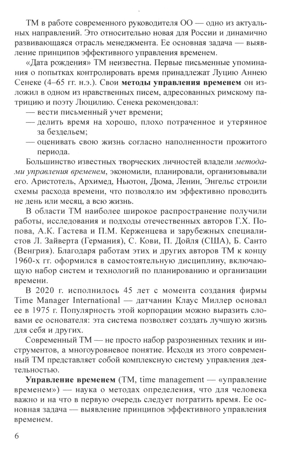 В современных условиях один из значимых факторов стабильного функционирования и развития дошкольной образовательной организации - эффективная управленческая деятельность в структуре использования технологий тайм-менеджмента. Управление временем (тайм-менеджмент) - наука о методах определения рационального использования рабочего и личного времени. Управление временем включает в себя инструменты и методики планирования с целью увеличения эффективности использования времени. Тайм-менеджмент применим и к работе и технического специалиста, и к профессиональной деятельности педагогов и руководителей дошкольного образования. В представленном методическом пособии авторы адаптировали имеющиеся технологии и методики к условиям образовательных организаций. Книга будет полезна руководителям ДОО, их заместителям, методистам, а также широкому кругу людей, стремящихся структурировать рабочее и свободное время.| Издательство | Творческий центр Сфера |
