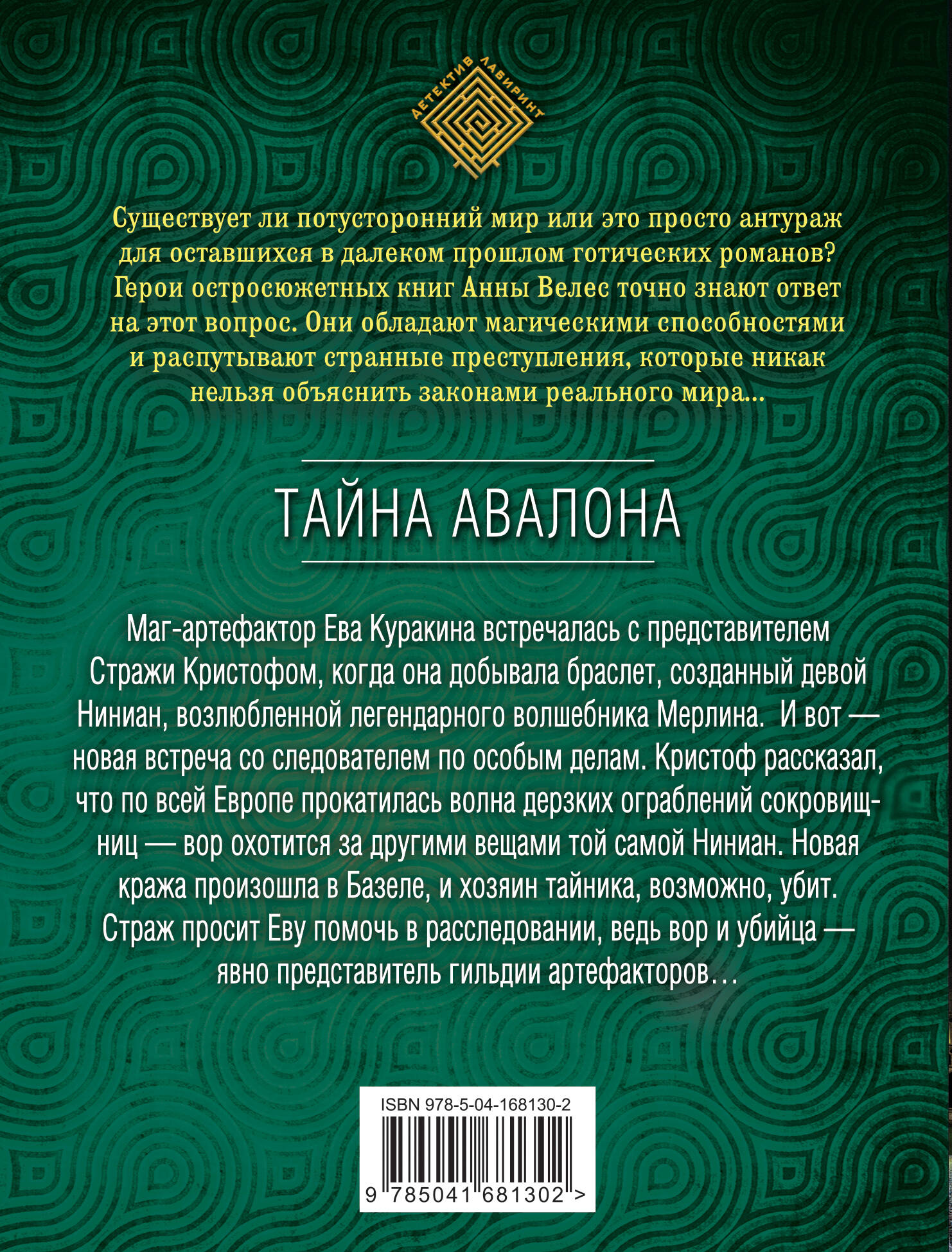 Маг-артефактор Ева Куракина встречалась с представителем Стражи Кристофом, когда она добывала браслет, созданный девой Ниниан, возлюбленной легендарного волшебника Мерлина. И вот - новая встреча со следователем по особым делам. Кристоф рассказал, что по всей Европе прокатилась волна дерзких ограблений сокровищниц - вор охотится за другими вещами той самой Ниниан. Новая кража произошла в Базеле, и хозяин тайника, возможно, убит. Страж просит Еву помочь в расследовании, ведь вор и убийца - явно представитель гильдии артефакторов… Анна Велес представляет мистический цикл «Ева Куракина. Маг-Артефактор», который продолжается новым остросюжетным романом «Тайна Авалона». Ева Куракина - лучший в Москве маг-артефактор. Никто, кроме нее, не разбирается так хорошо в древних магических предметах и связанных с ними символах. И эти знания ей очень понадобятся, ведь Еве предстоит очередное опасное расследование.| Издательство | Эксмо |